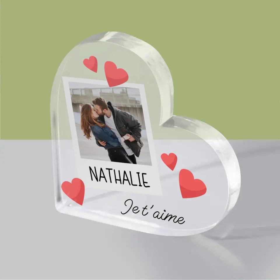 Photo Et Texte: Je T'Aime - Bloc Acrylique Cœur
