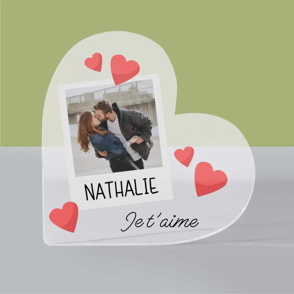 Photo Et Texte: Je T'Aime - Bloc acrylique cœur