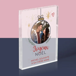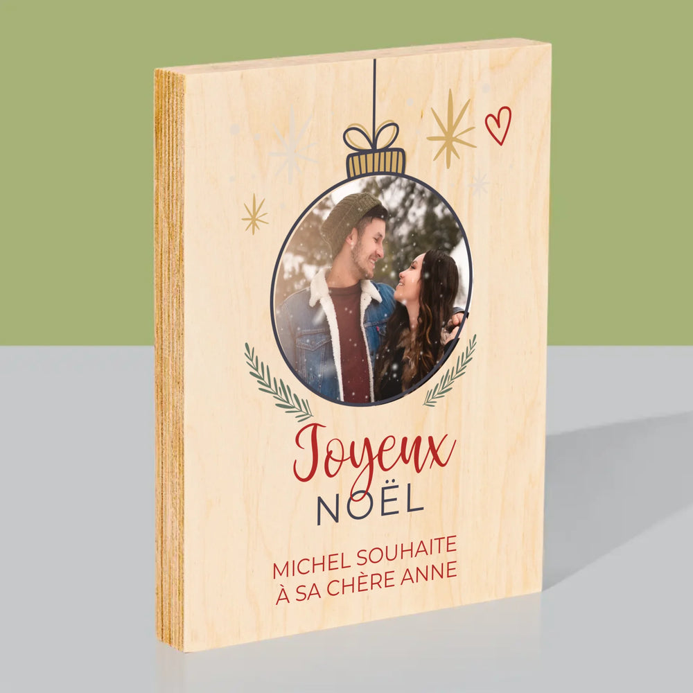 La Photo Et Un Texte: Joyeux Noël, Boule - Impression sur bois - vertical