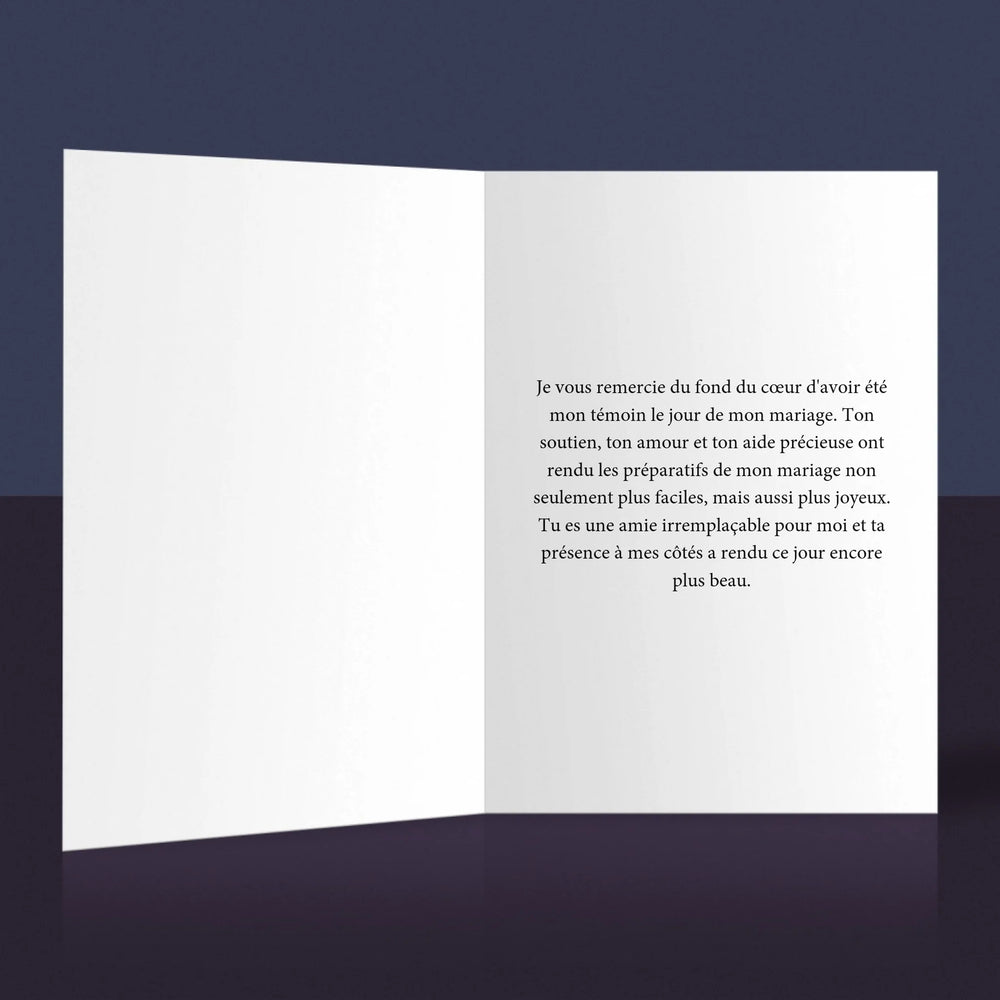 Dimensions de la carte pliée : standard : 13 x 18 cm, version XL : 21 x 29,5 cm.