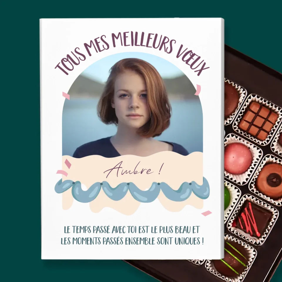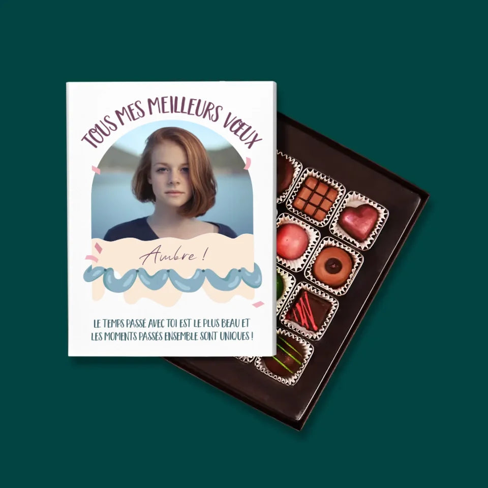De délicieuses pralines au chocolat belge dans une boîte élégante avec personnalisation de votre choix.