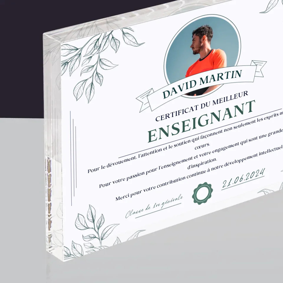 Photo Et Texte: Le Certificat Du Meilleur Enseignant - Bloc acrylique - horizontal