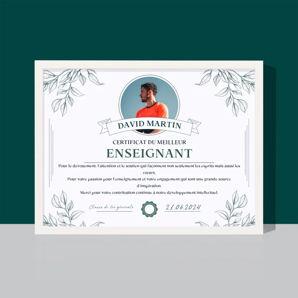 Photo Et Texte: Certificat Du Meilleur Enseignant - Impression encadrée - Horizontale