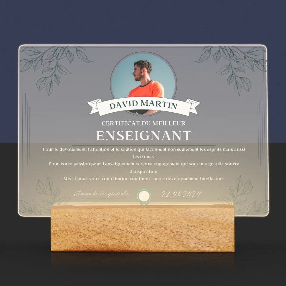 Photo Et Texte: Le Certificat Du Meilleur Enseignant - Impression sur verre acrylique