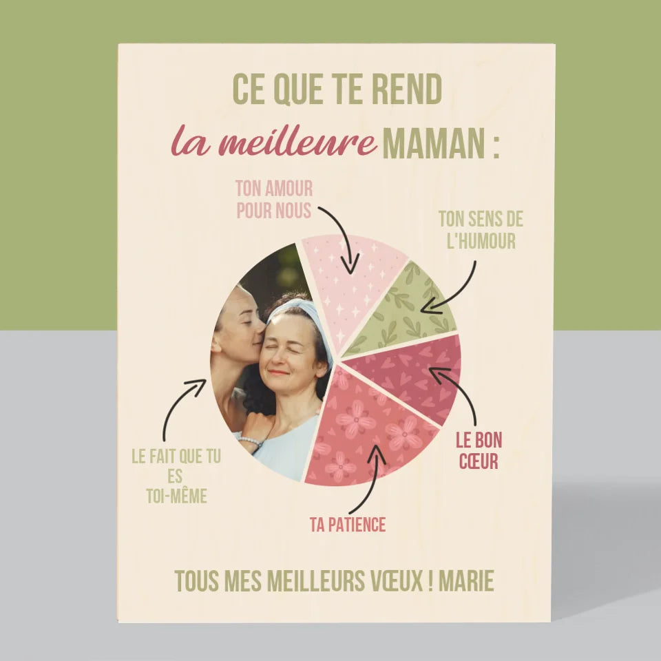 Photo Et Texte: Les Qualités De La Meilleure Maman - Impression sur bois - vertical