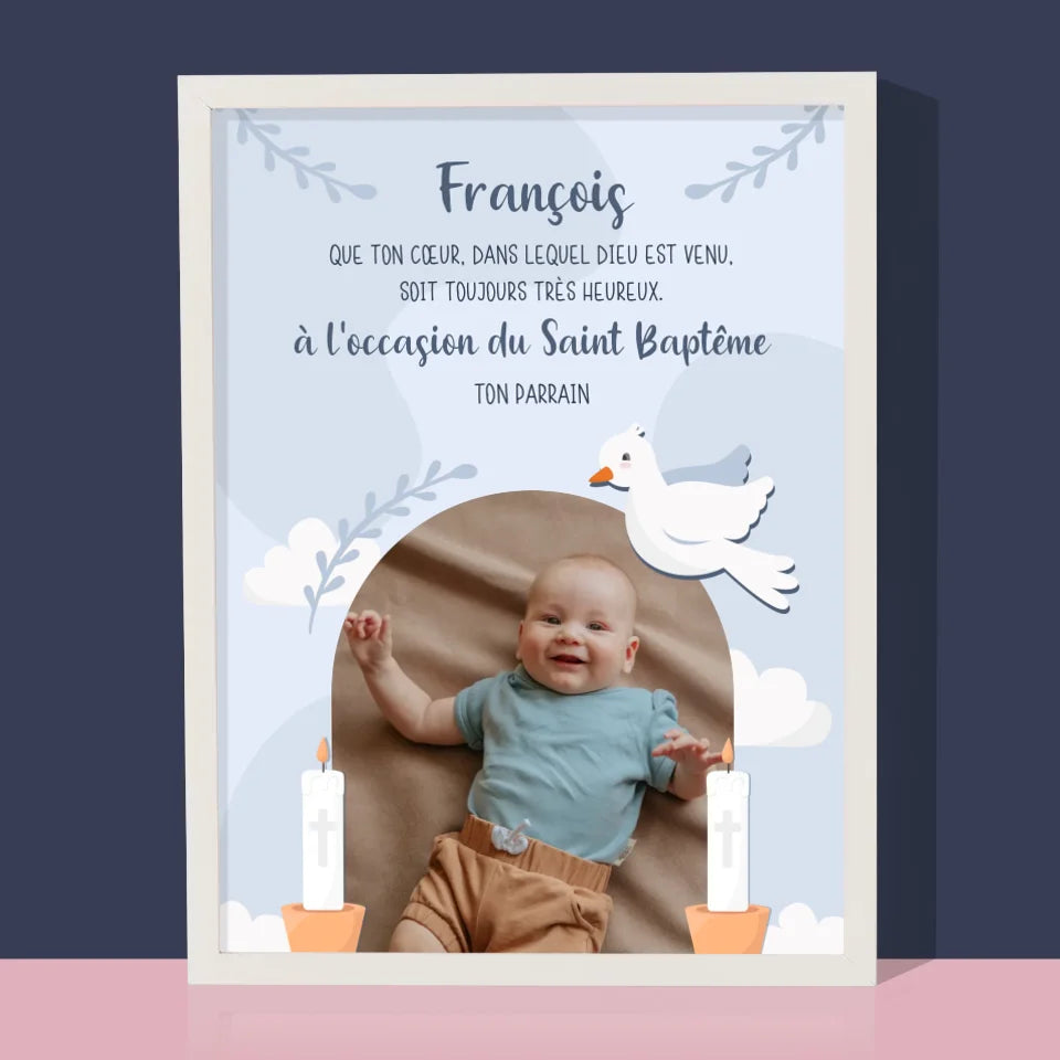 Photo Et Texte: À L'Occasion Du Baptême - Impression encadrée - Vertical