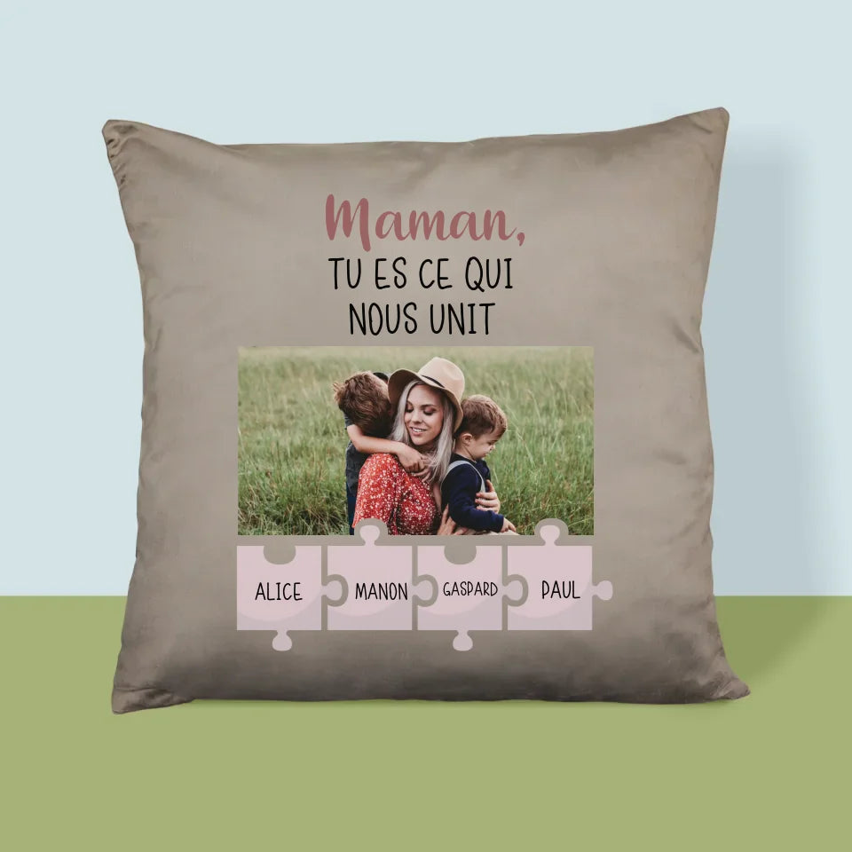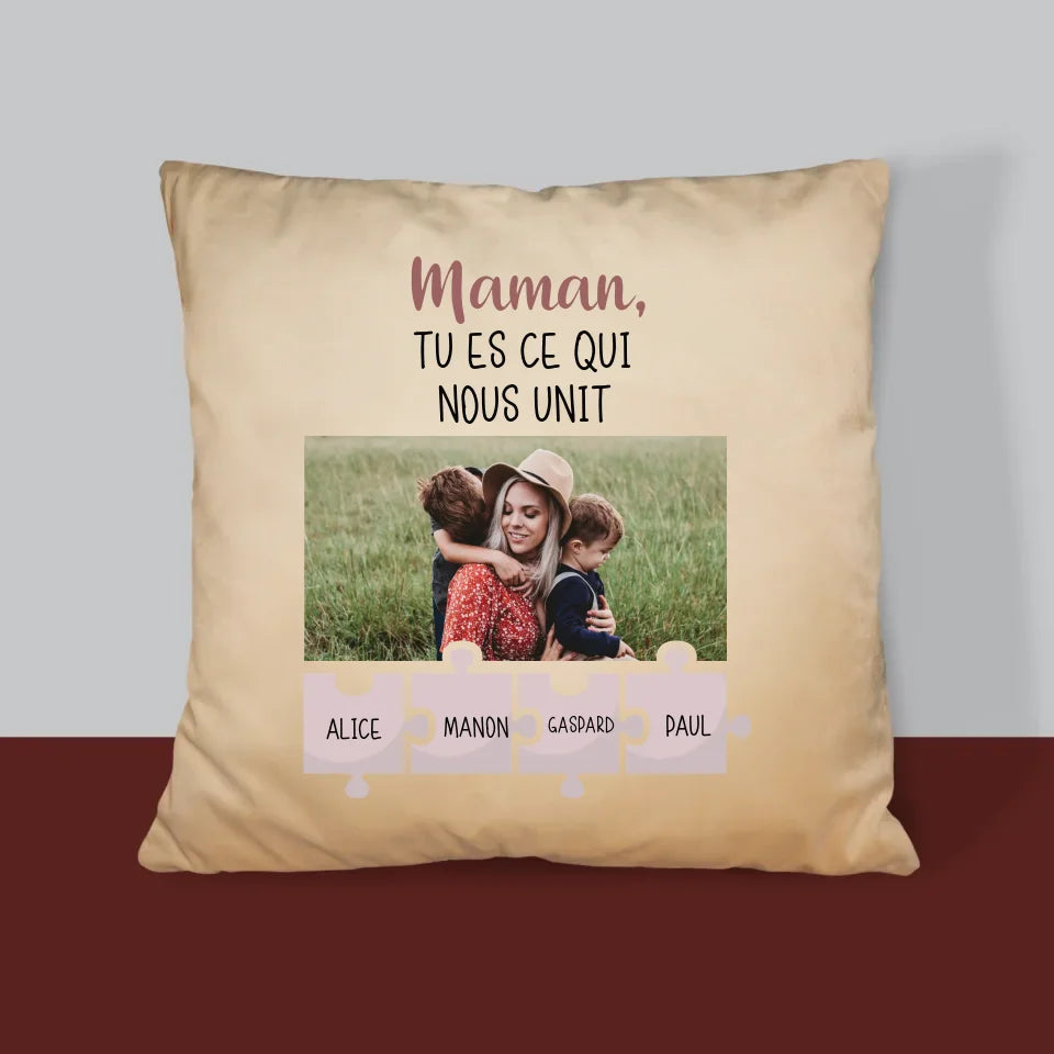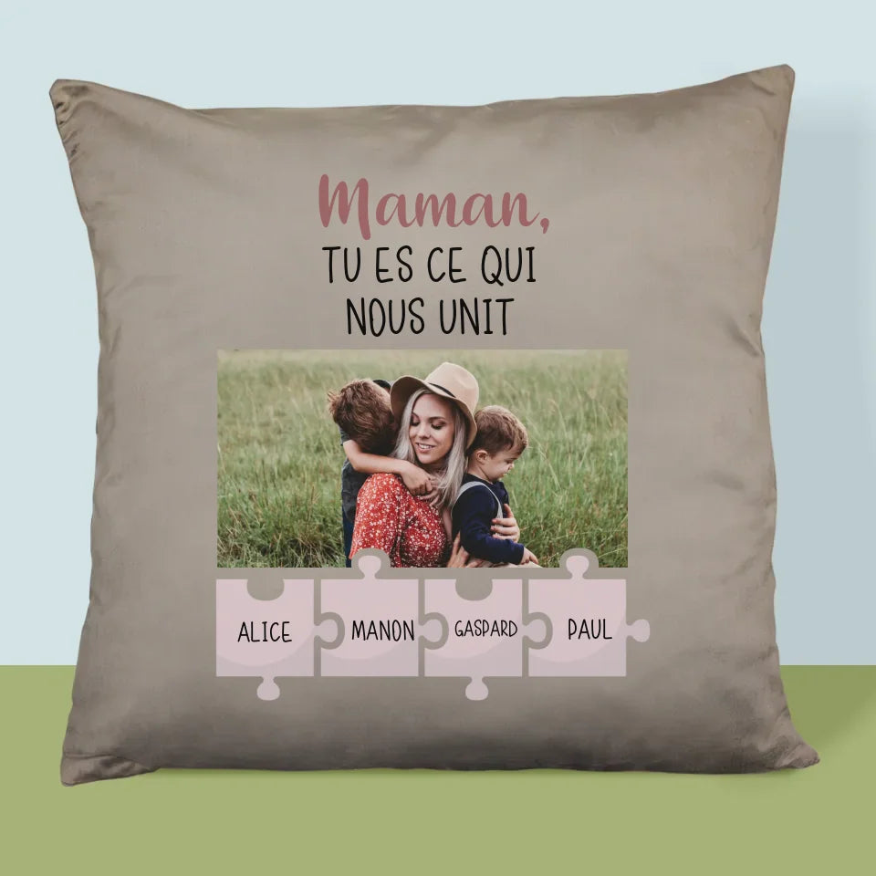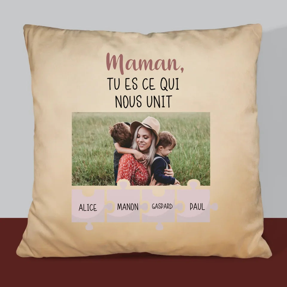 Photo Et Texte: Maman Tu Es Ce Qui Nous Unit - Coussin