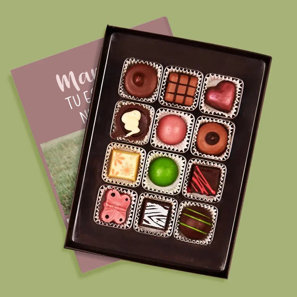 De délicieuses pralines au chocolat belge dans une boîte élégante avec personnalisation de votre choix.