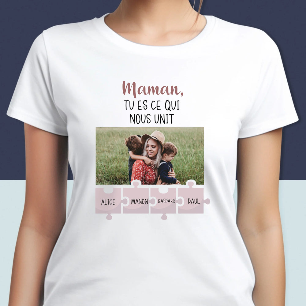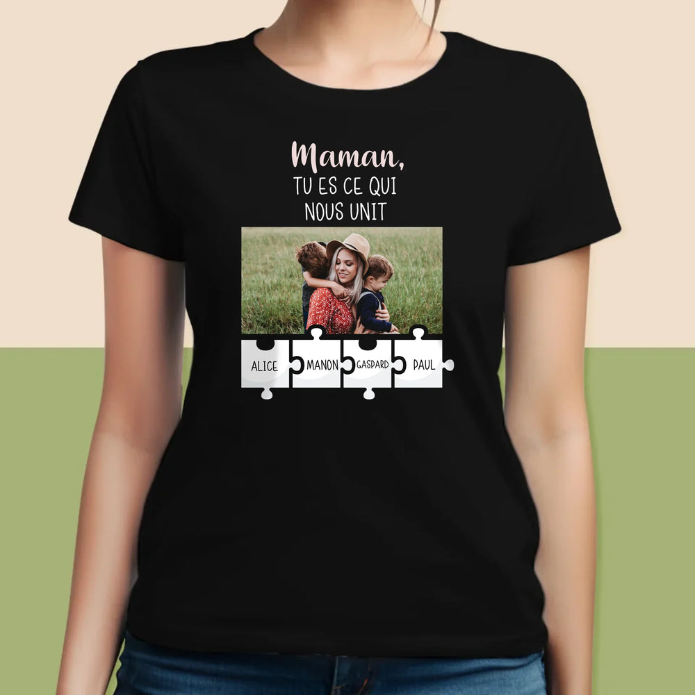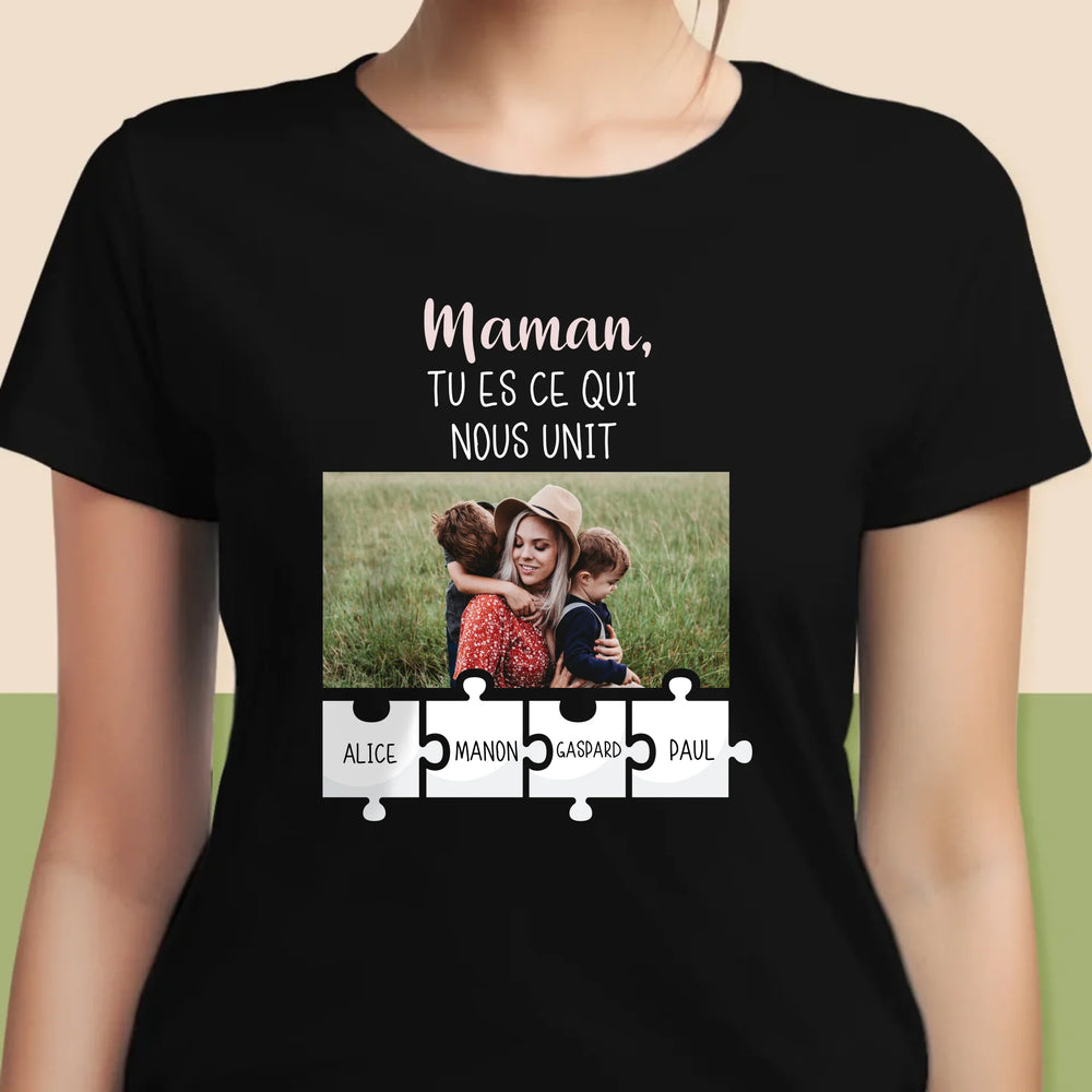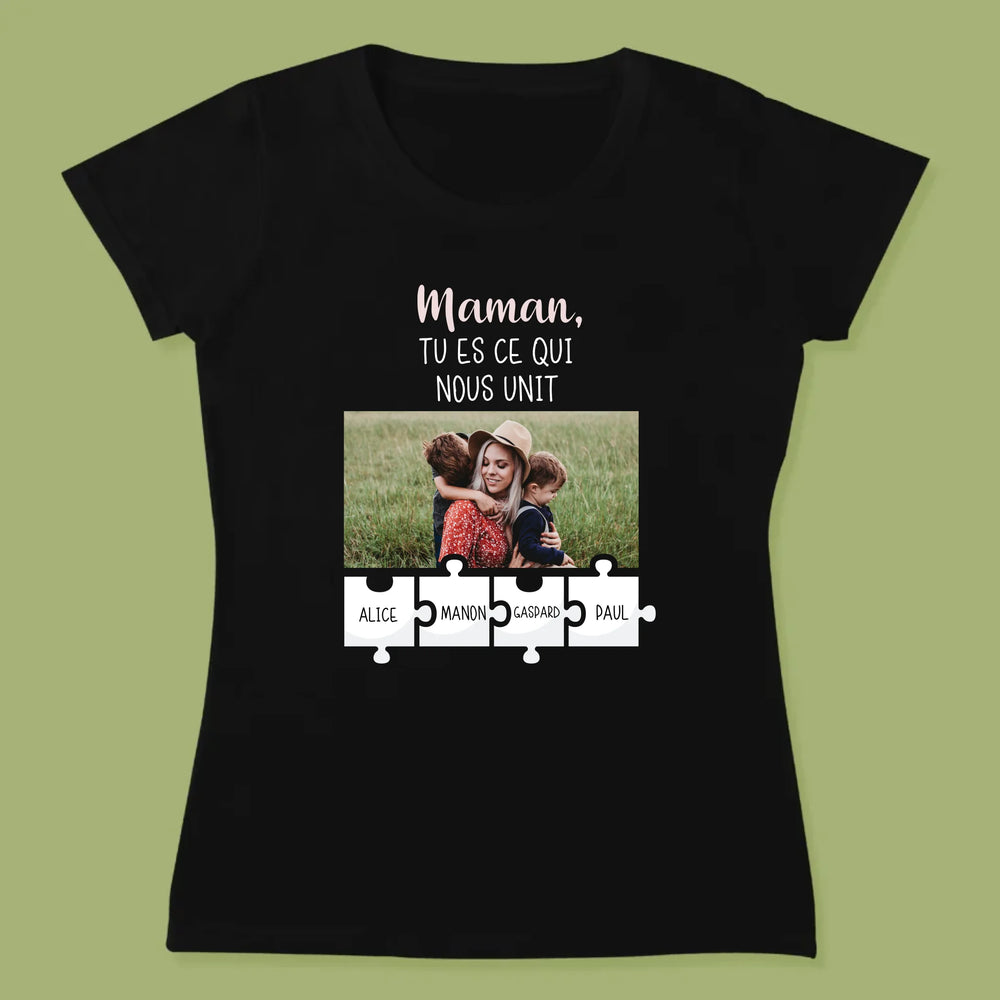 La Photo Et Un Texte: Maman Tu Es Ce Qui Nous Unit - T-shirt pour femmes