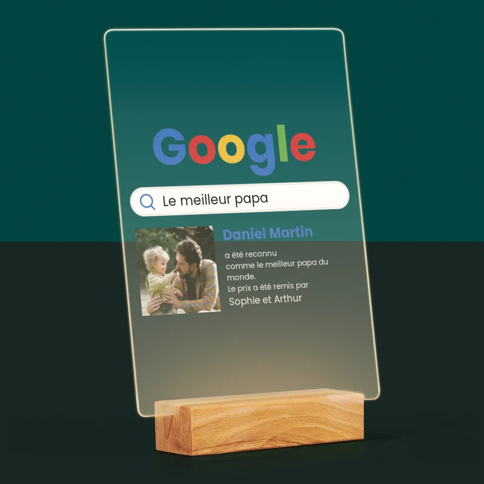 Photo Et Texte: Meilleur Père Résultat Google - Impression sur verre acrylique LED