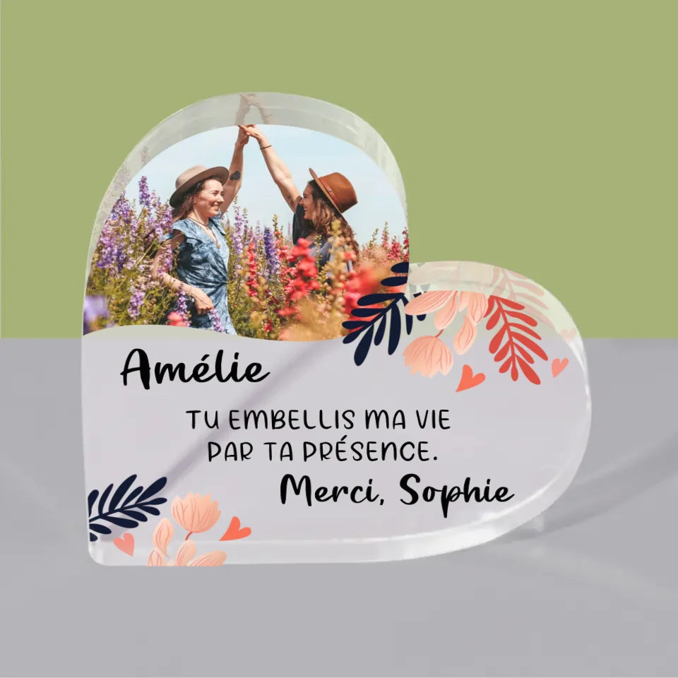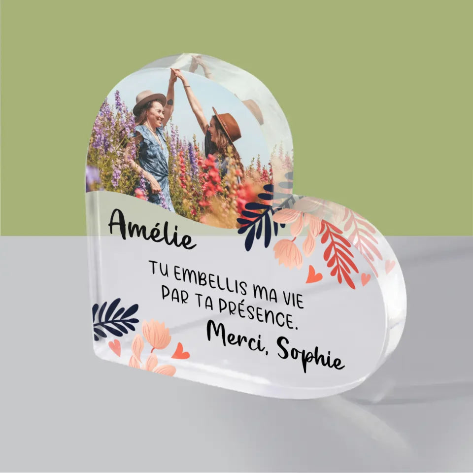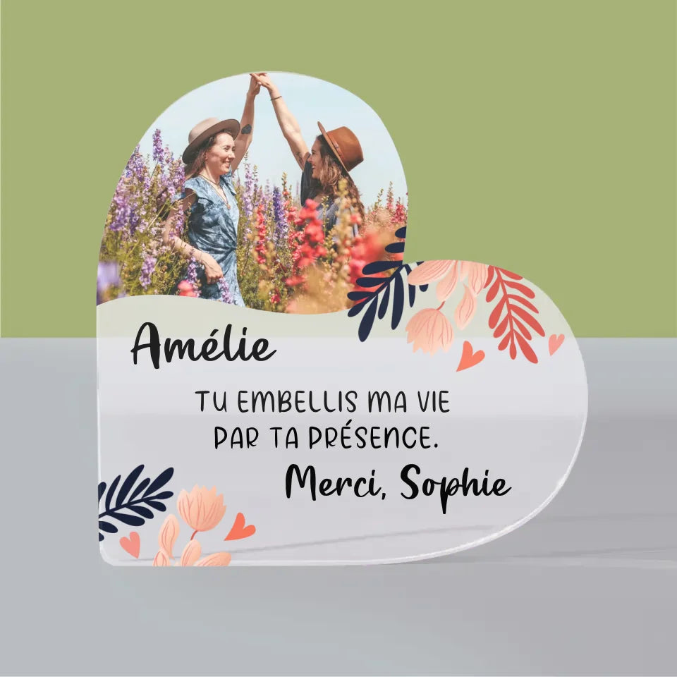 Photo Et Texte: Merci À Un Amie - Bloc acrylique cœur