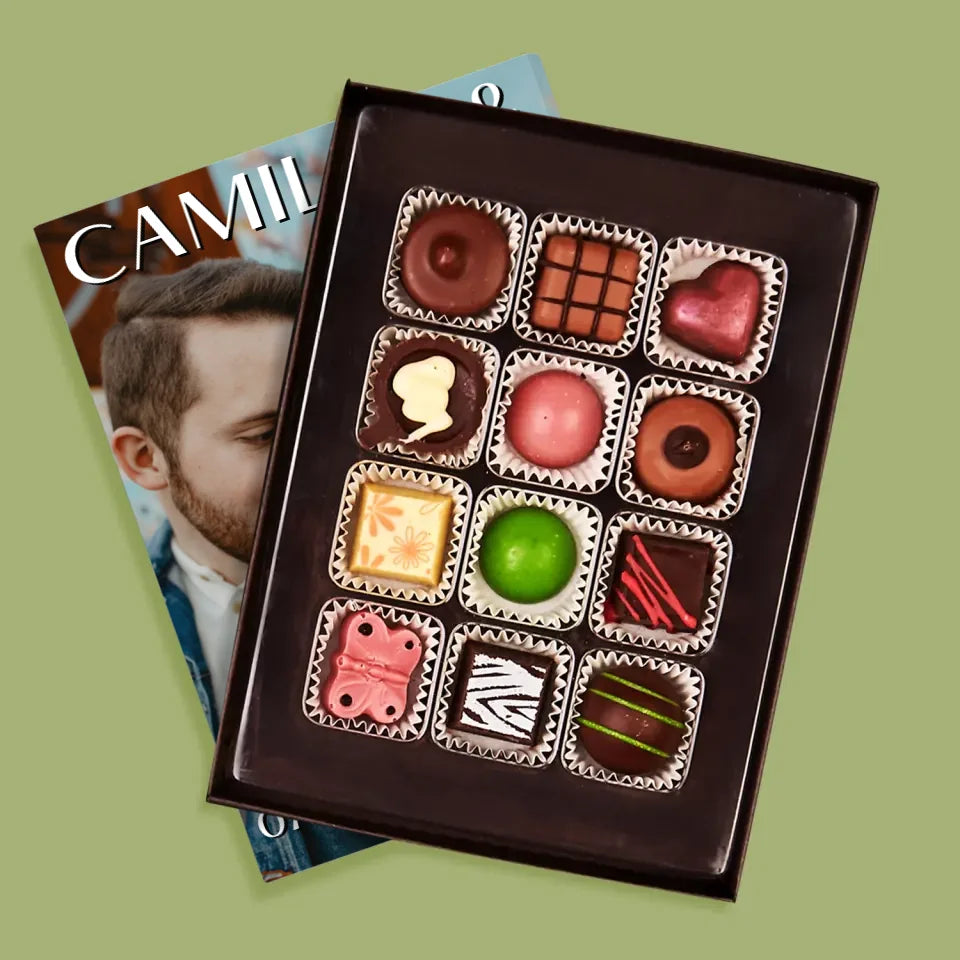 De délicieuses pralines au chocolat belge dans une boîte élégante avec personnalisation de votre choix.