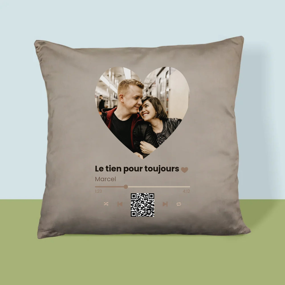 La Photo Et Un Texte: Notre Chanson Cœur Code Qr - Coussin