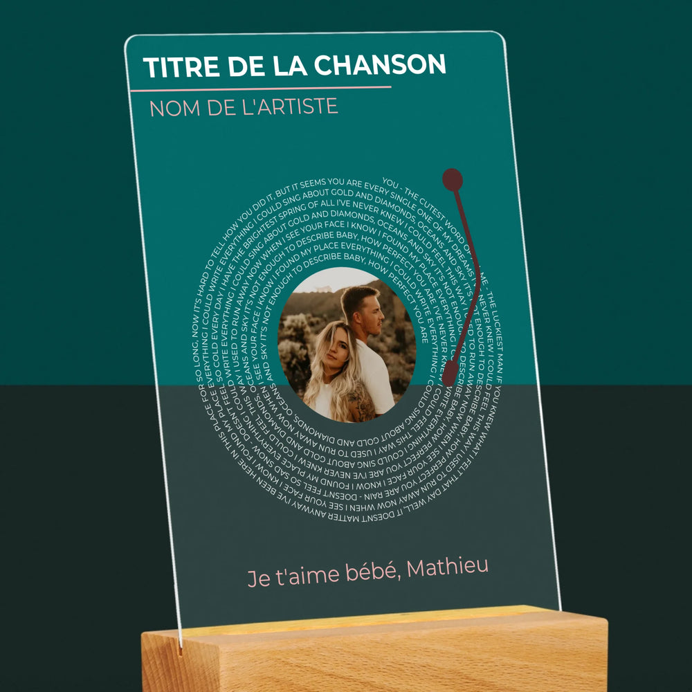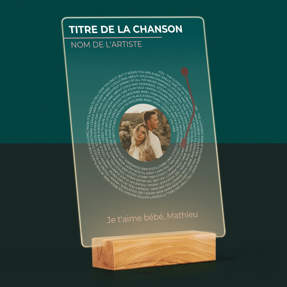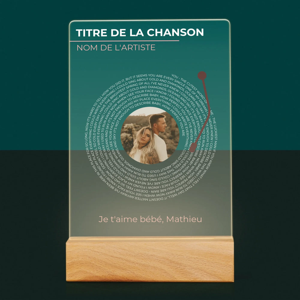 La Photo Et Un Texte: Notre Chanson Disque Vinyle - Impression sur verre acrylique LED