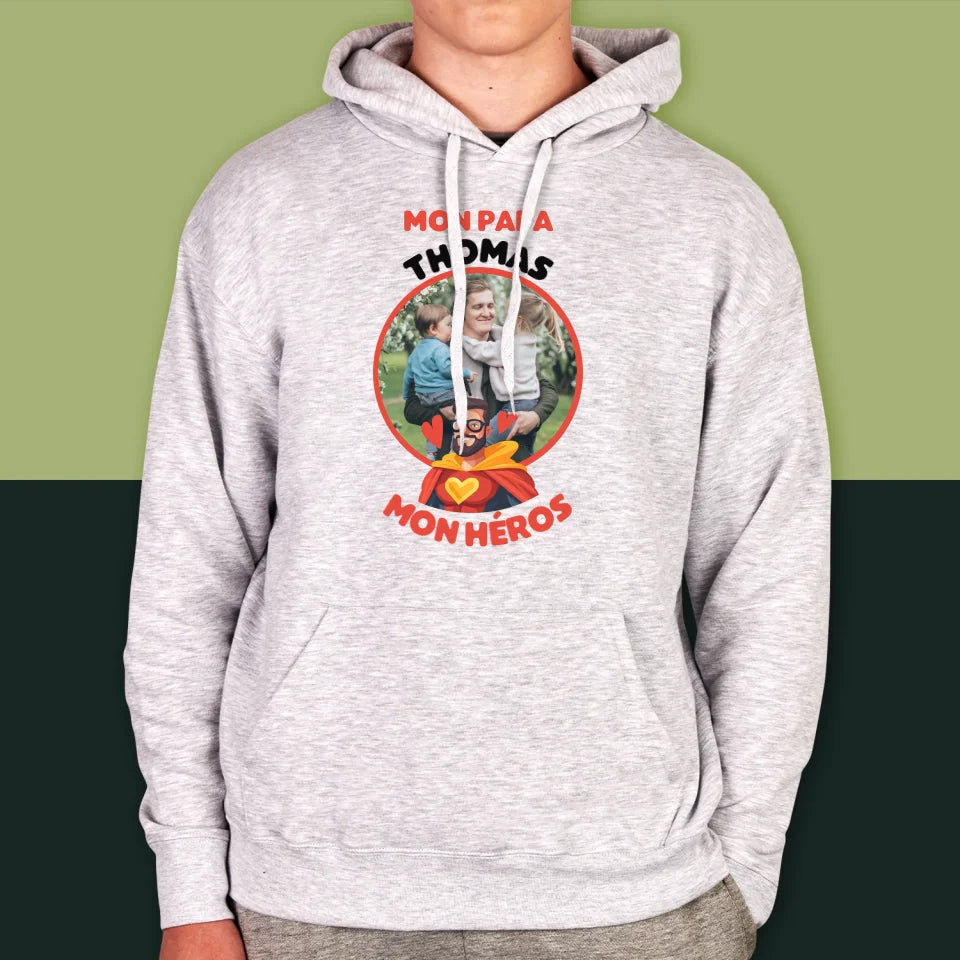 La Photo Et Un Texte: Papa, Mon Héros - Sweat à capuche pour hommes
