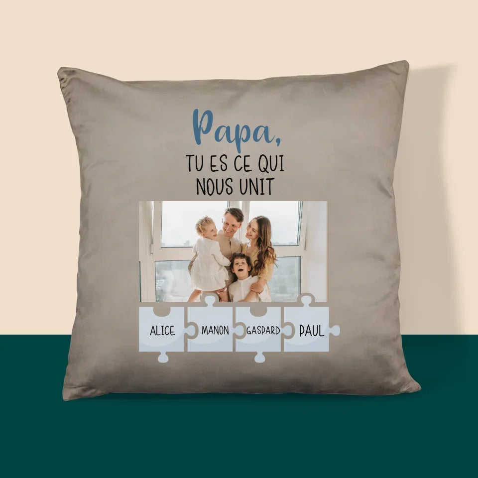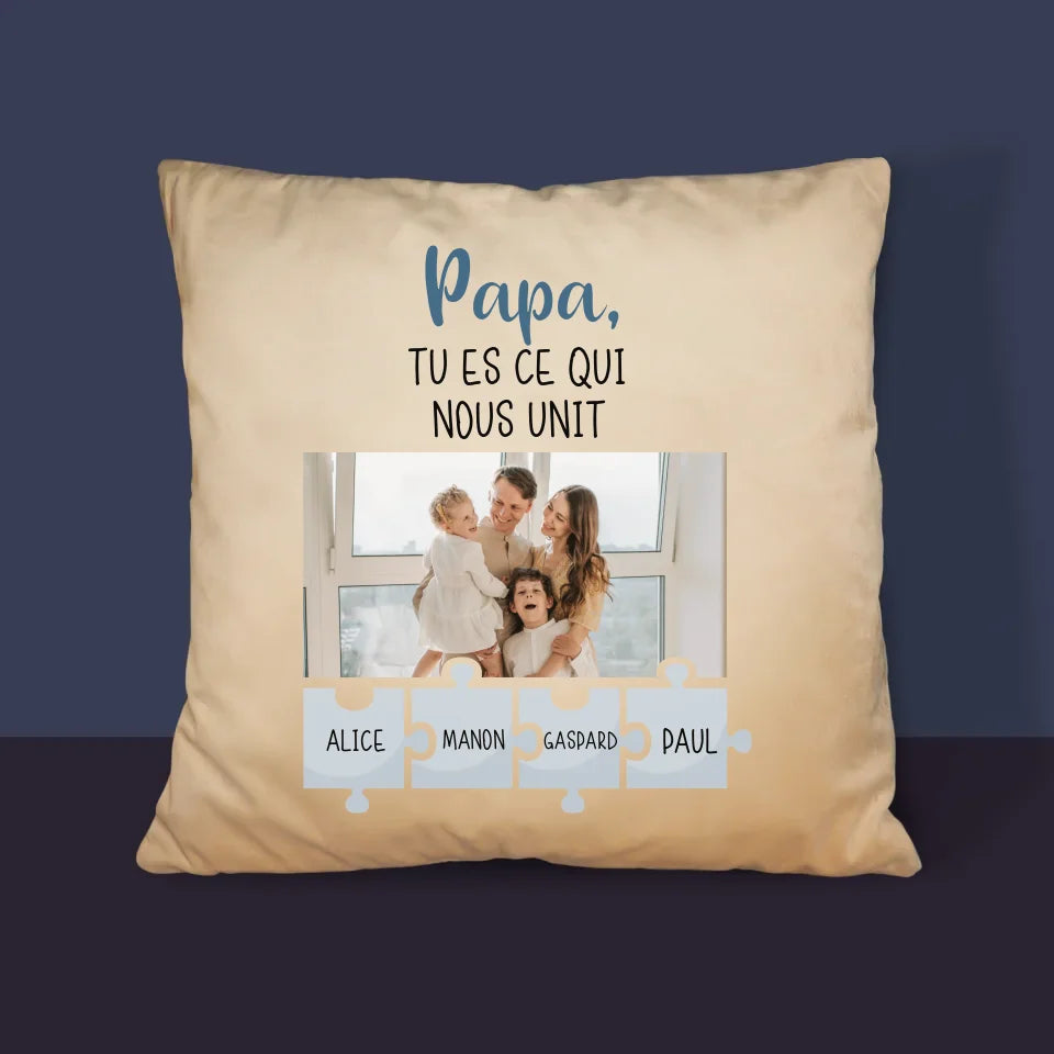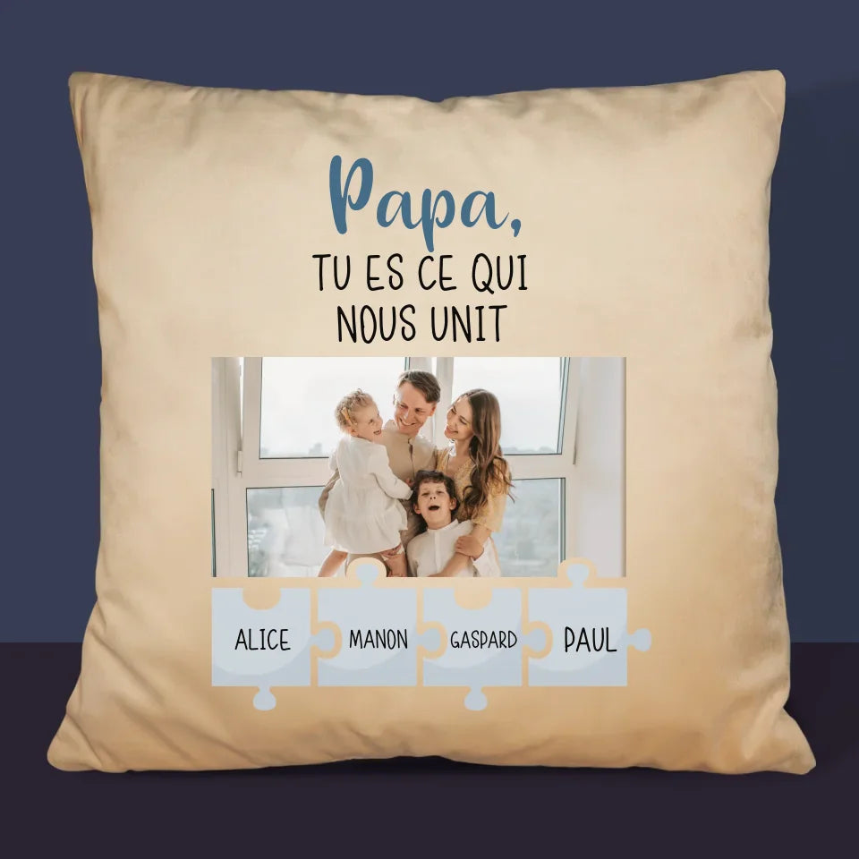 Photo Et Texte: Papa, Tu Es Ce Qui Nous Unit - Coussin