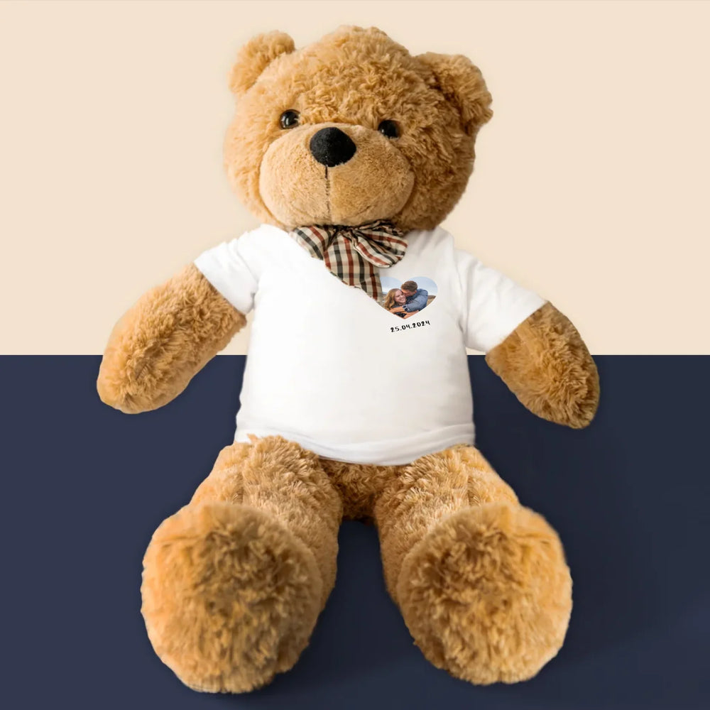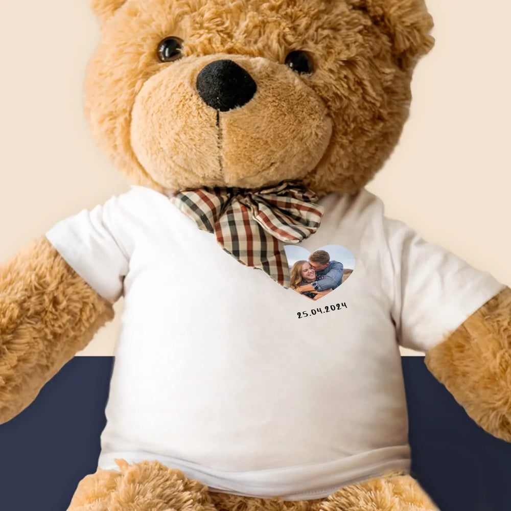 Nous personnalisons votre choix sur le t-shirt que porte l'ours en peluche.