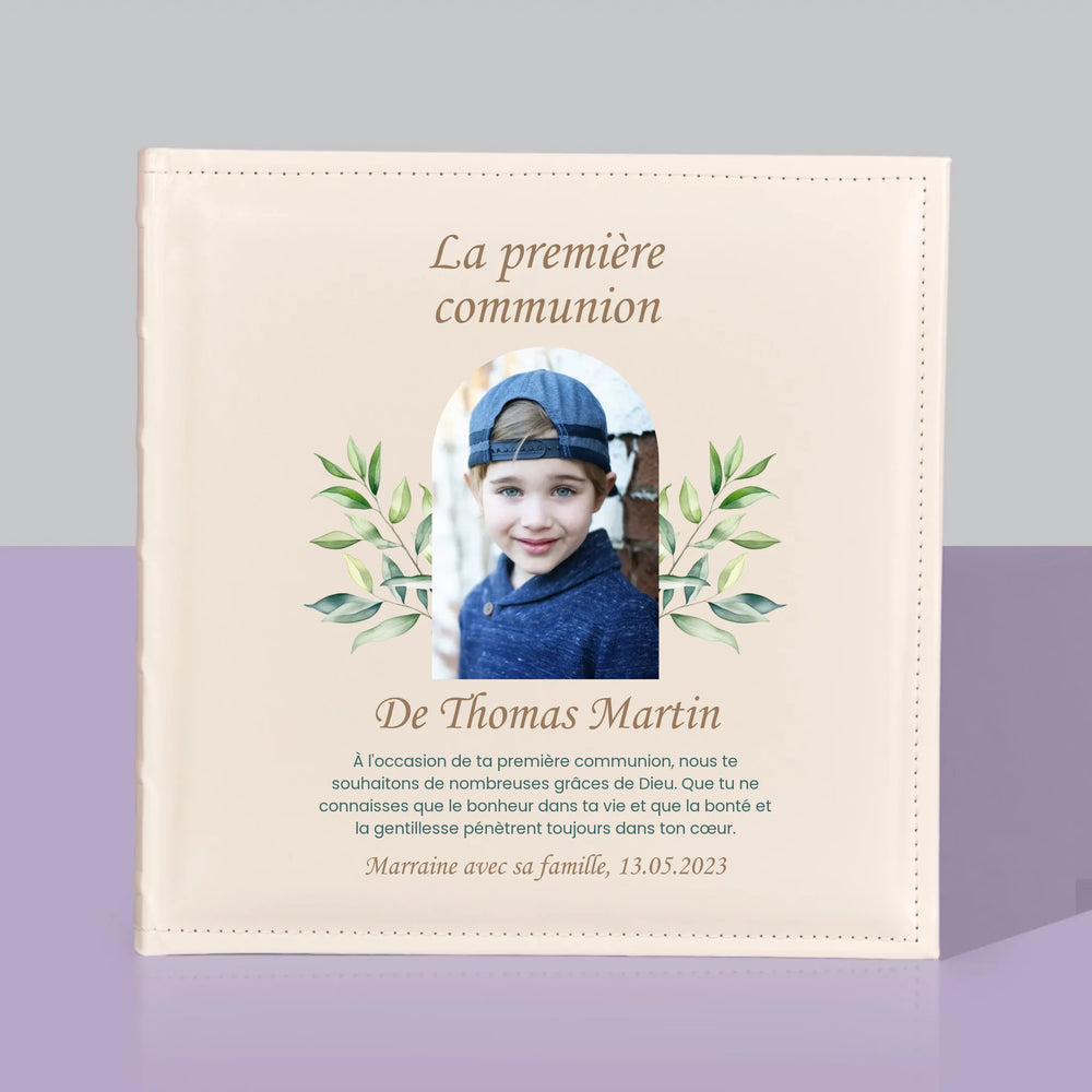 Un album photo traditionnel avec la personnalisation de votre choix sur la couverture.