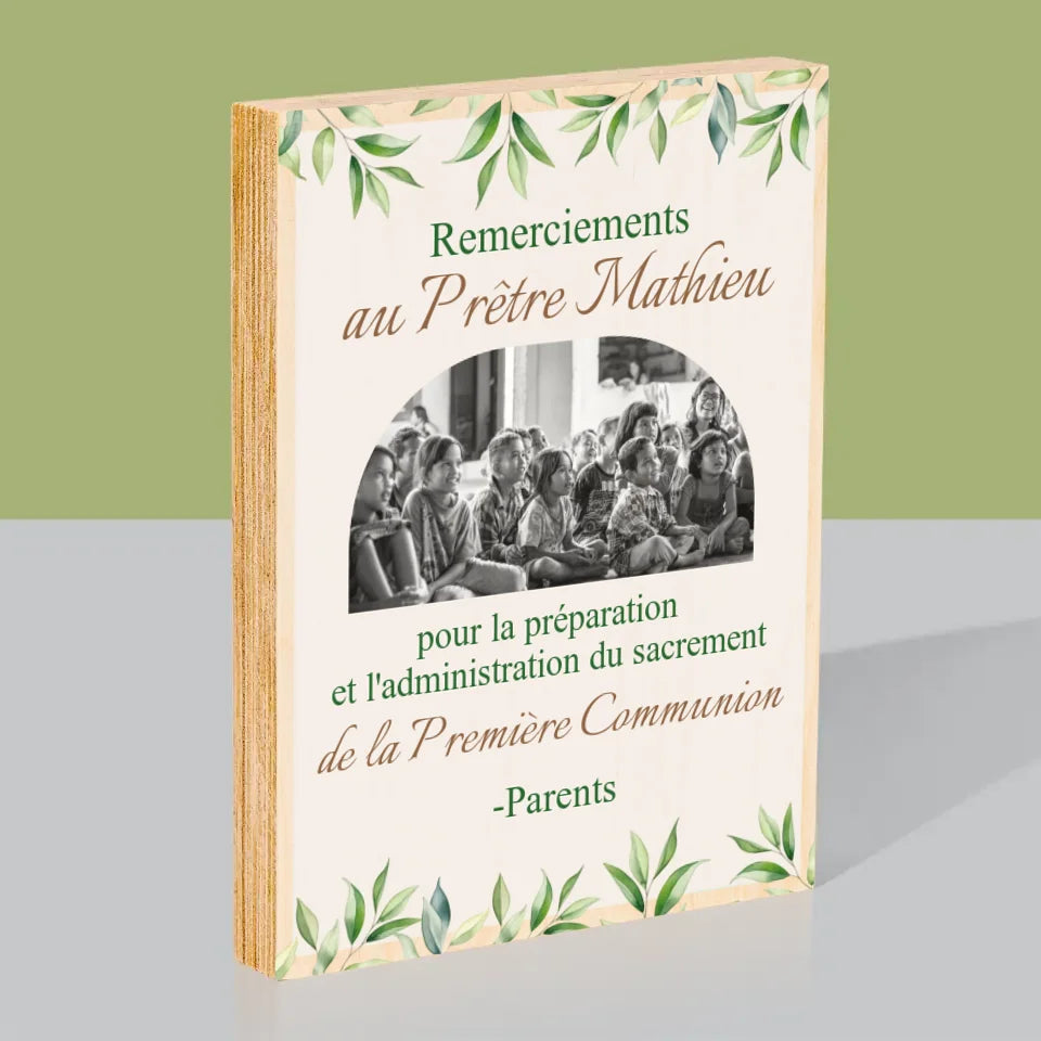 La Photo Et Un Texte: Remerciements Au Prêtre Communion - Impression sur bois - vertical