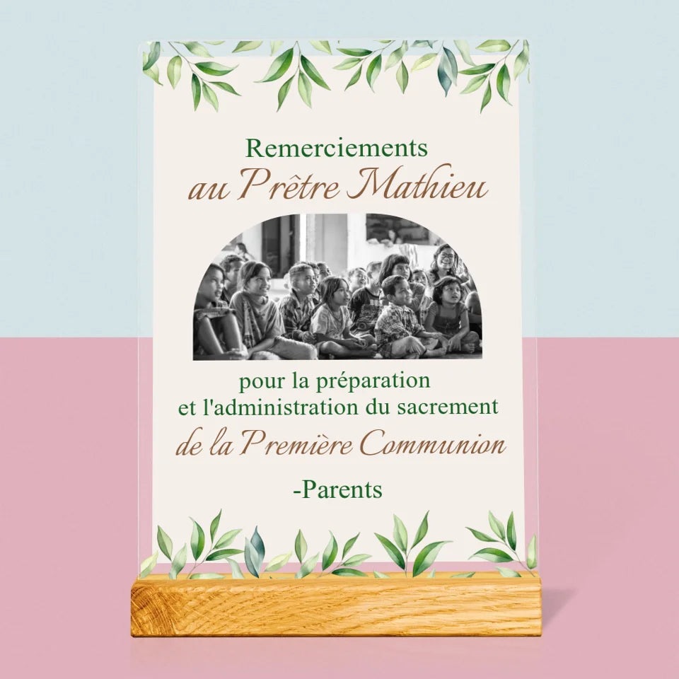 La Photo Et Un Texte: Remerciements Au Prêtre Communion - Impression sur verre acrylique