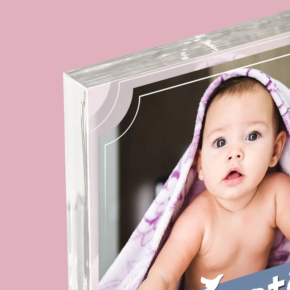 Un imprimé sur un bloc d'acrylique transparent (plexiglas) de 2 cm d'épaisseur avec un motif personnalisé de votre choix.