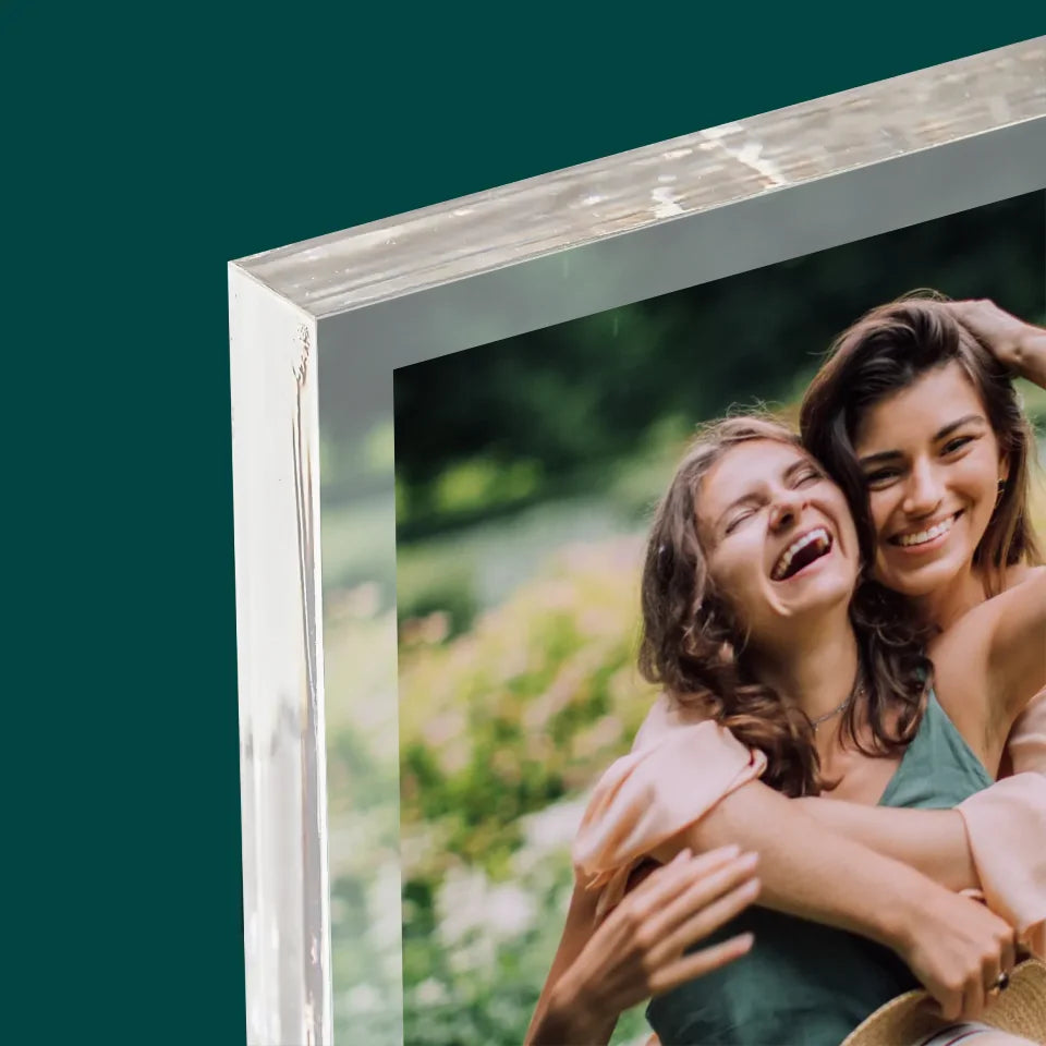 Un imprimé sur un bloc d'acrylique transparent (plexiglas) de 2 cm d'épaisseur avec un motif personnalisé de votre choix.