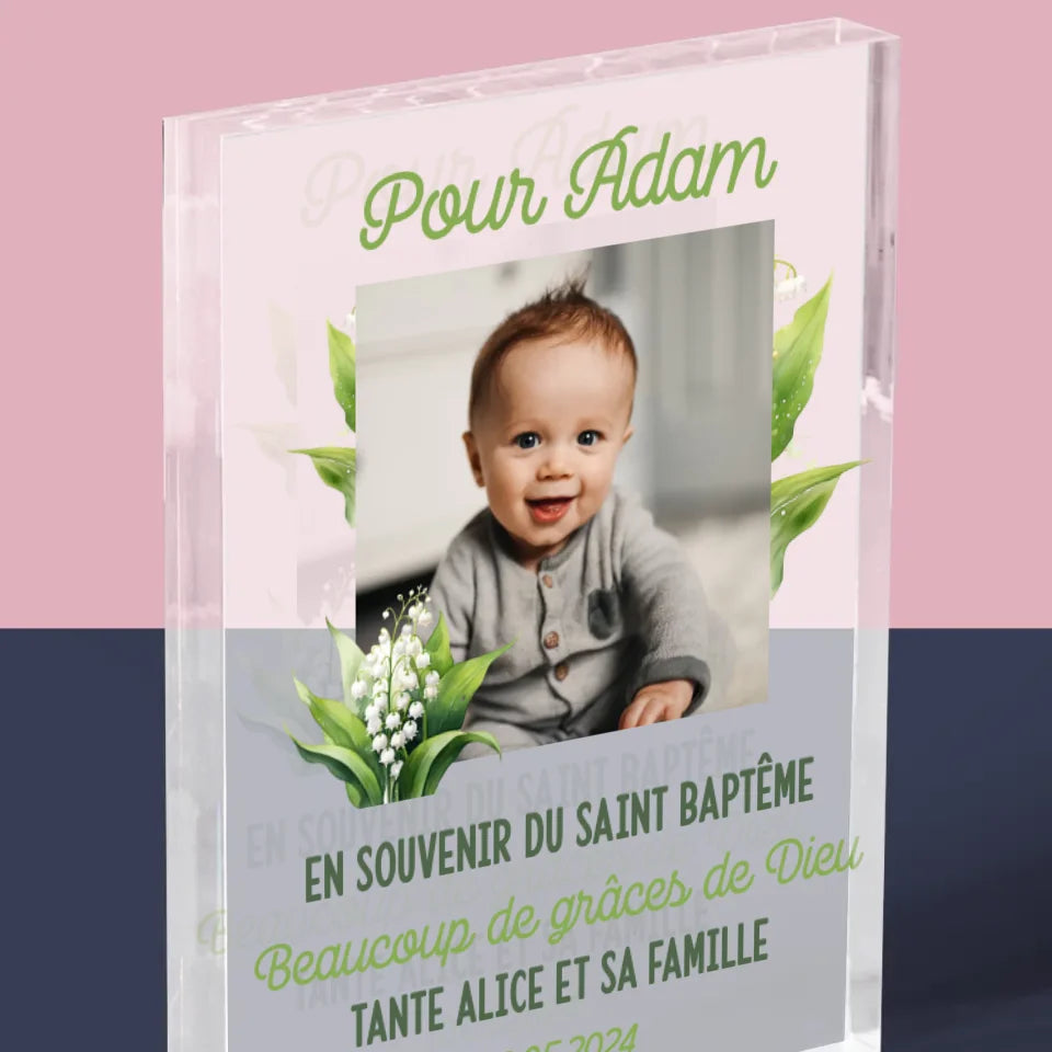 Photo Et Texte: Souvenir De Baptême Muguet - Bloc acrylique - vertical