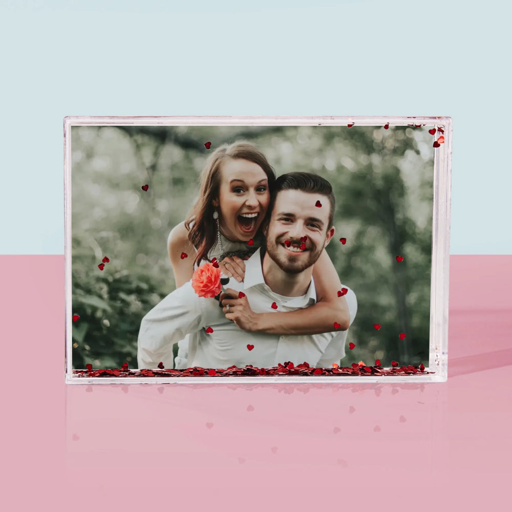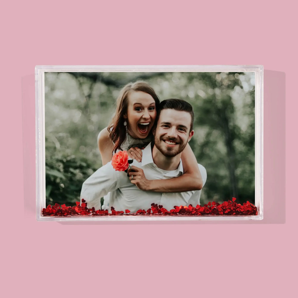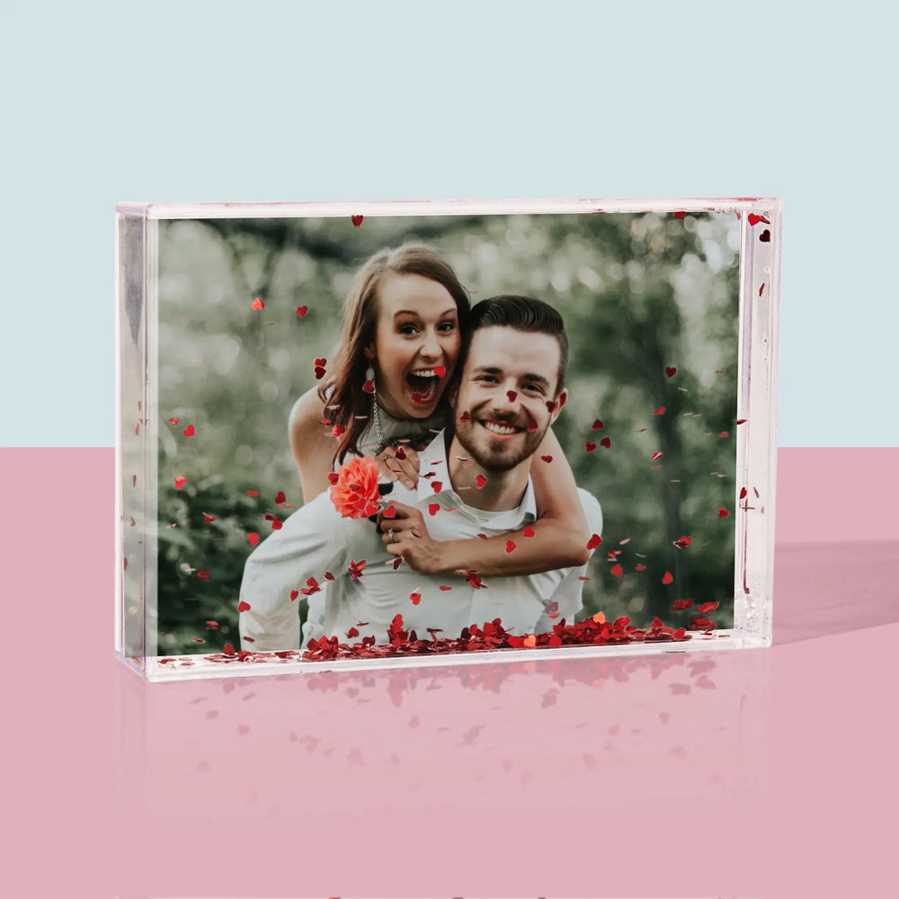 Fabriqué en plastique transparent, l'intérieur est rempli d'eau et de confettis en forme de cœur !