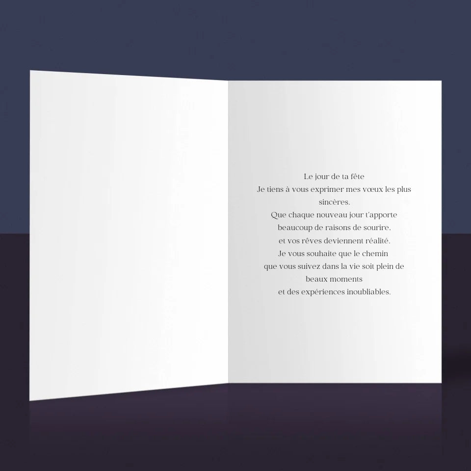 Carte de vœux personnalisée pour une occasion spéciale.