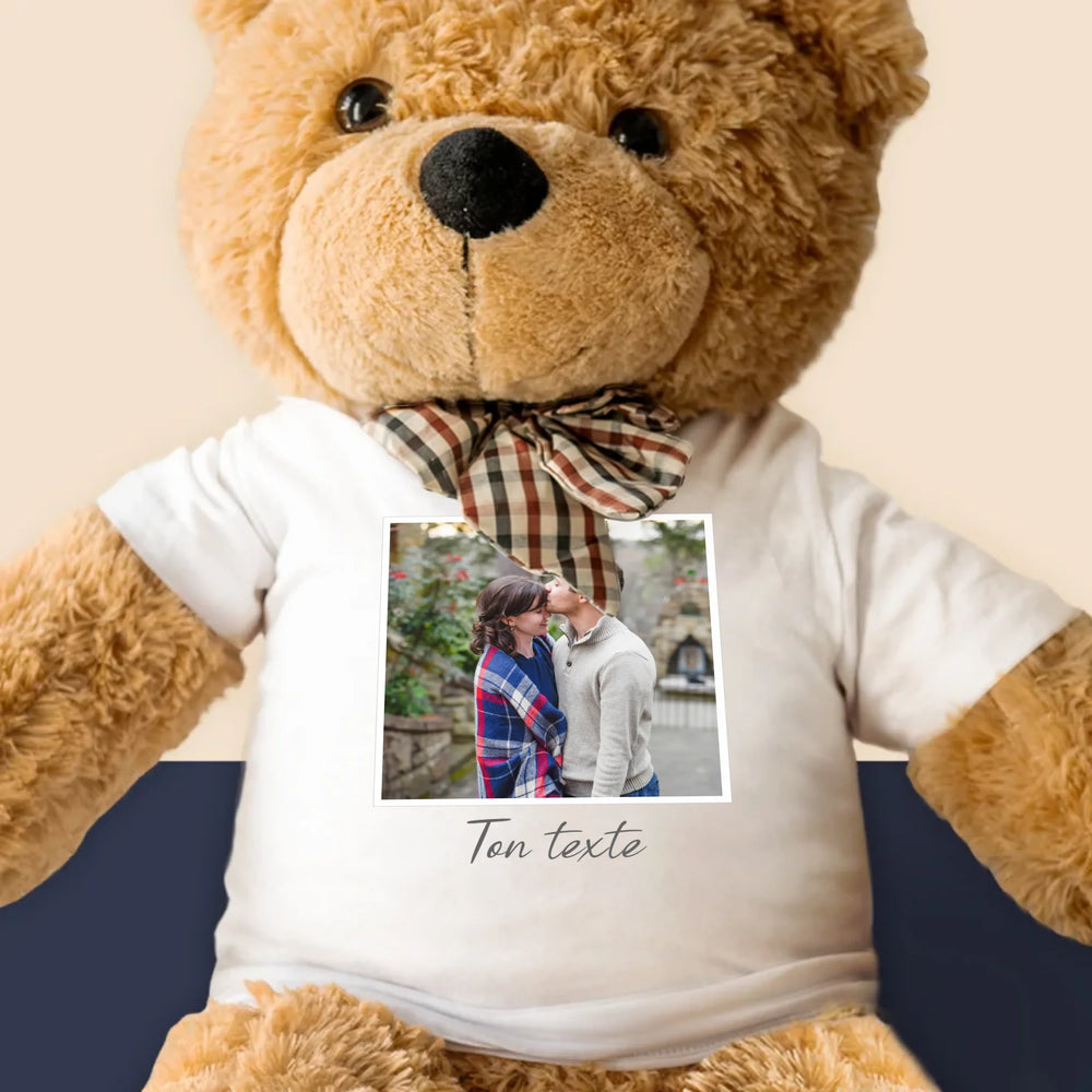 Nous personnalisons votre choix sur le t-shirt que porte l'ours en peluche.