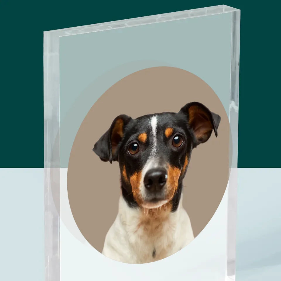 Un imprimé sur un bloc d'acrylique transparent (plexiglas) de 2 cm d'épaisseur avec un motif personnalisé de votre choix.