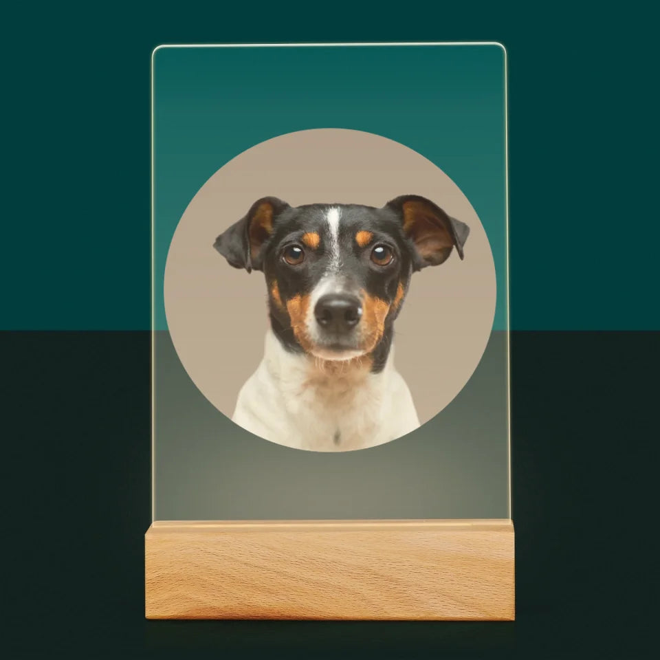 Dimensions du verre A4 : 29,5 x 22 cm, dimensions du support en bois : 15 x 4,5 cm