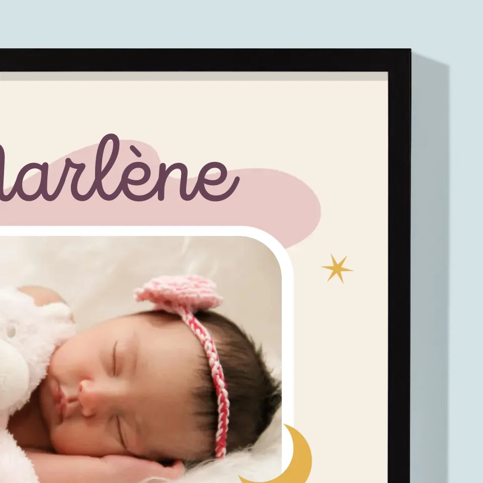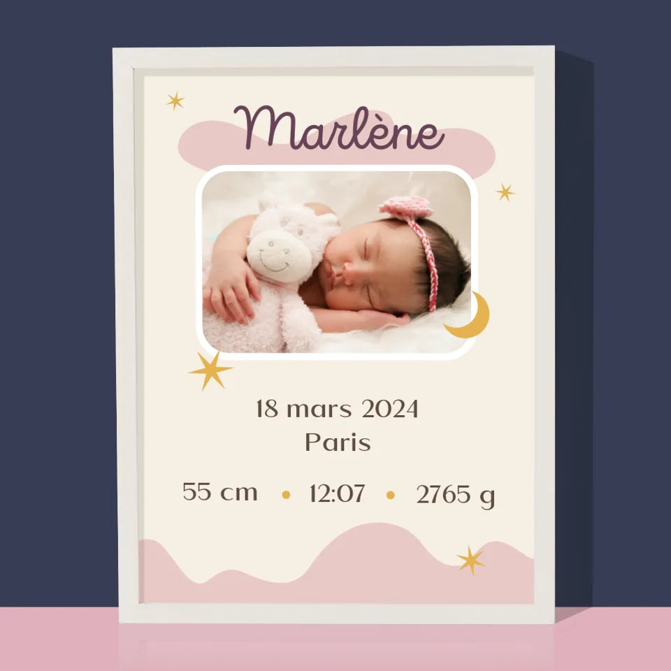 Acte De Naissance De L'Enfant: Lune Métrique - Impression encadrée - Vertical