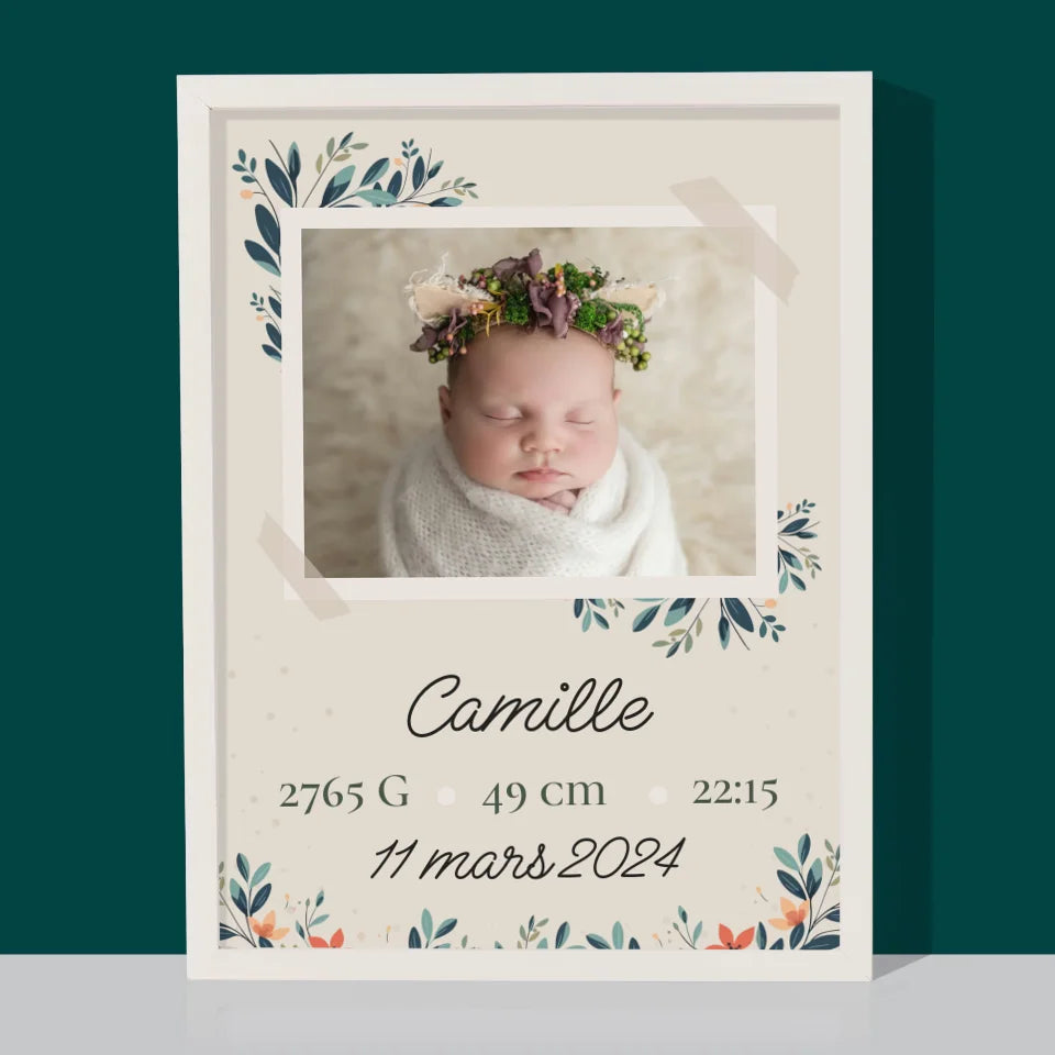 Acte De Naissance De L'Enfant: Métrique, Les Fleurs - Impression encadrée - Vertical