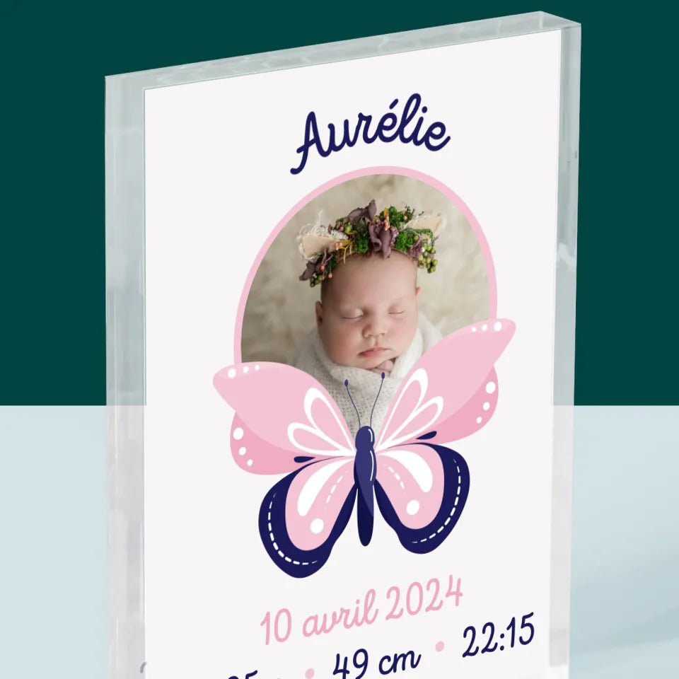 Acte De Naissance De L'Enfant: Métrique, Une Papillon - Bloc acrylique - vertical