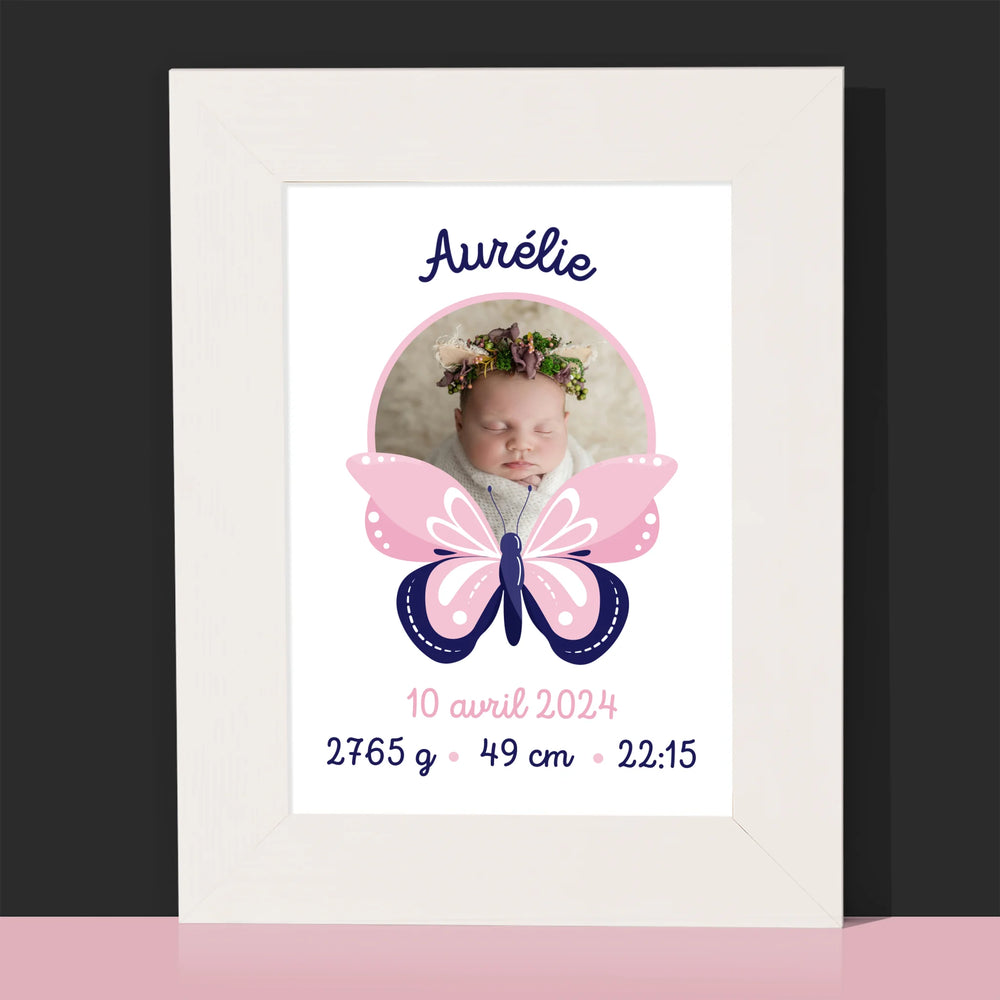 Acte De Naissance De L'Enfant: Métrique, Papillon - Cadre photo - vertical