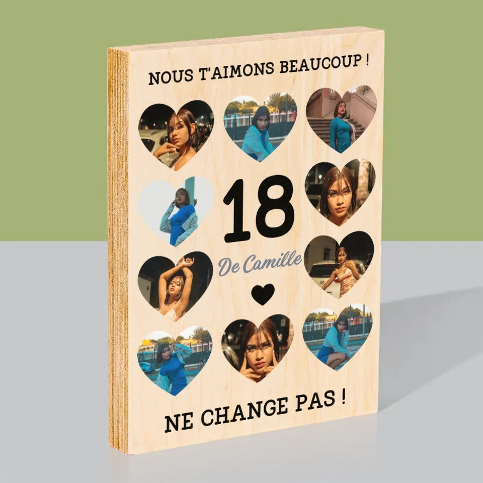 Le Collage Photo: 18 Cœurs - Impression sur bois - vertical