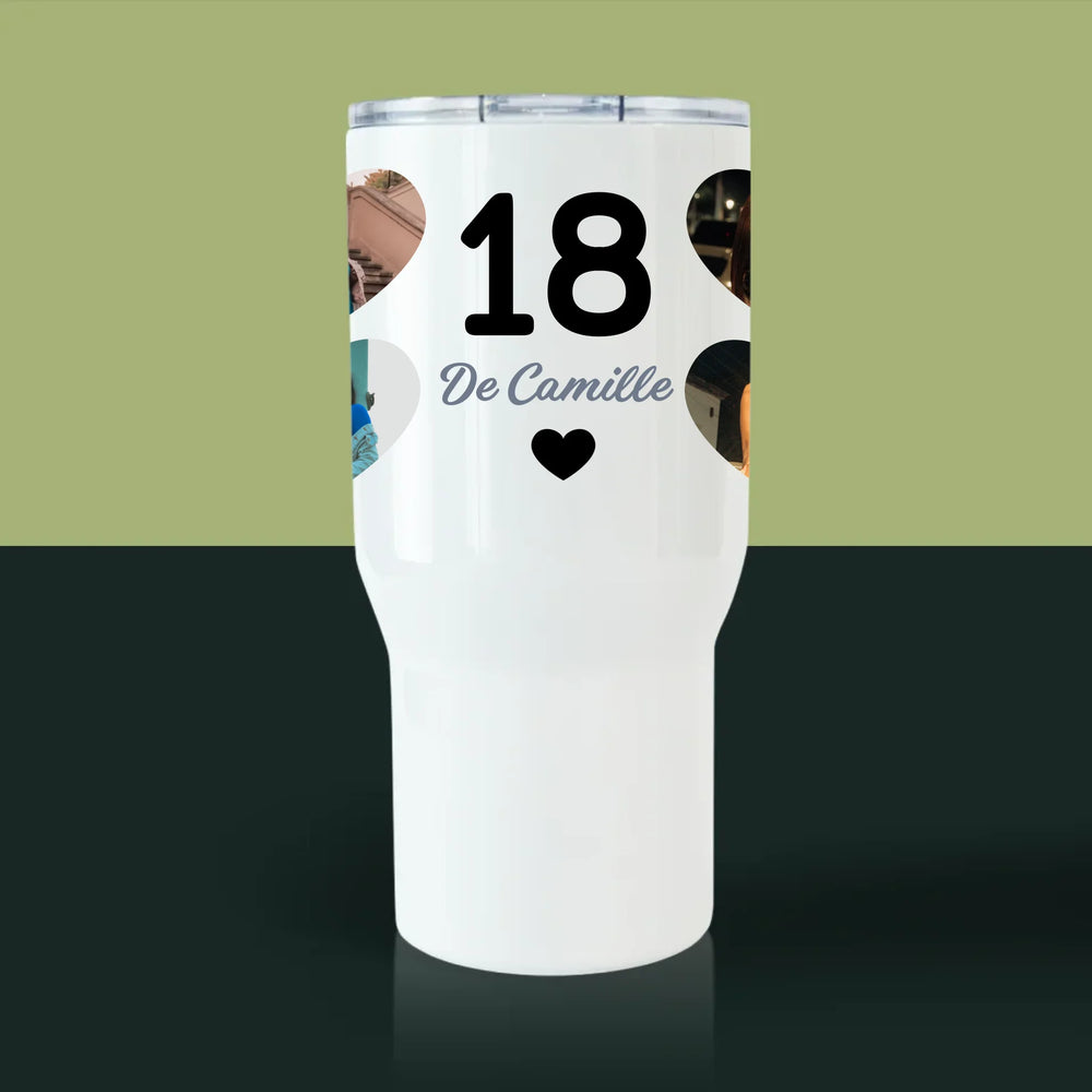 Le Collage Photo: 18 Cœurs - Mug de voyage 650 ml