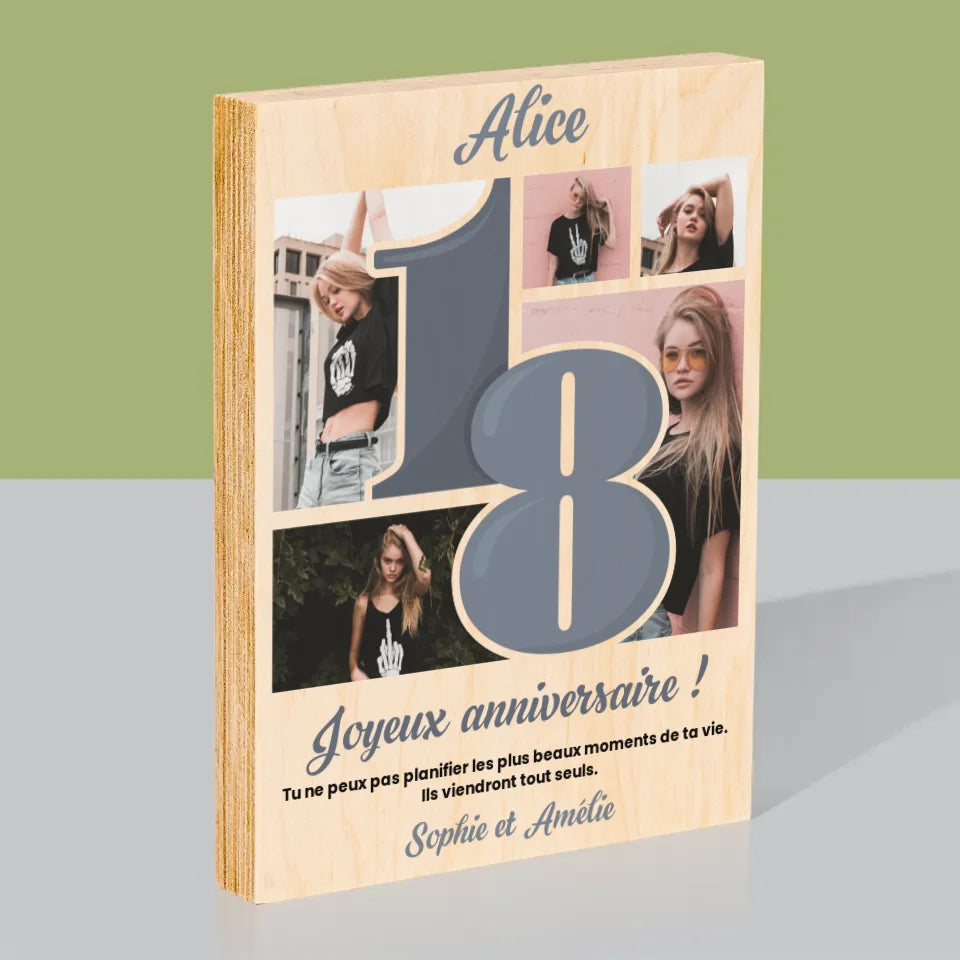 Le Collage Photo: 18 Plus Beaux Moments - Impression sur bois - vertical