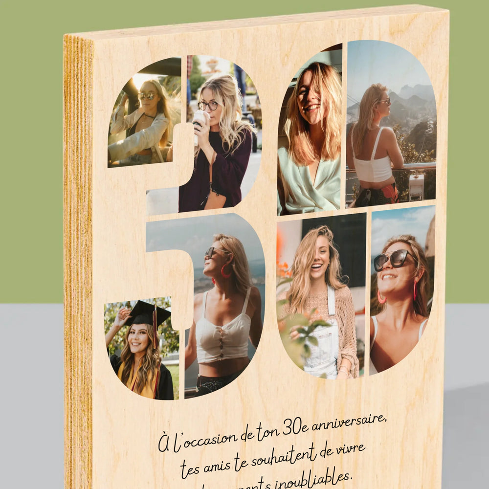 Le Collage Photo: 30E Anniversaire, Vœux - Impression sur bois - vertical