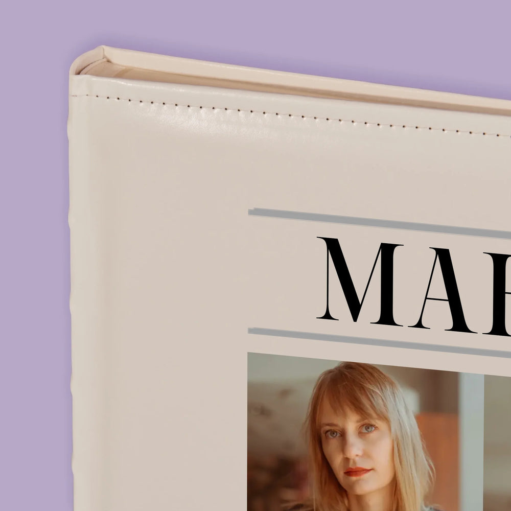 Un album photo traditionnel avec la personnalisation de votre choix sur la couverture.