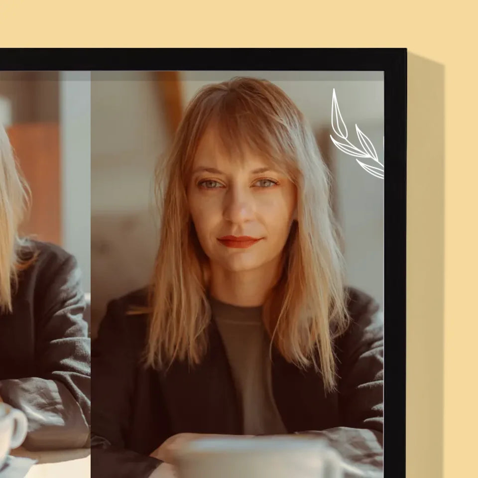 L'impression est réalisée sur le papier photo de haute qualité et encadré dans la couleur de votre choix : or, blanc ou noir.