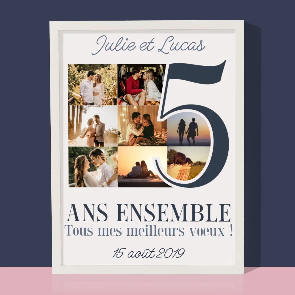Collage Photo: 5 Ans Ensemble - Impression encadrée - Vertical