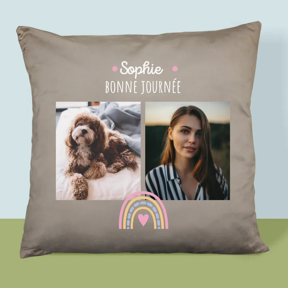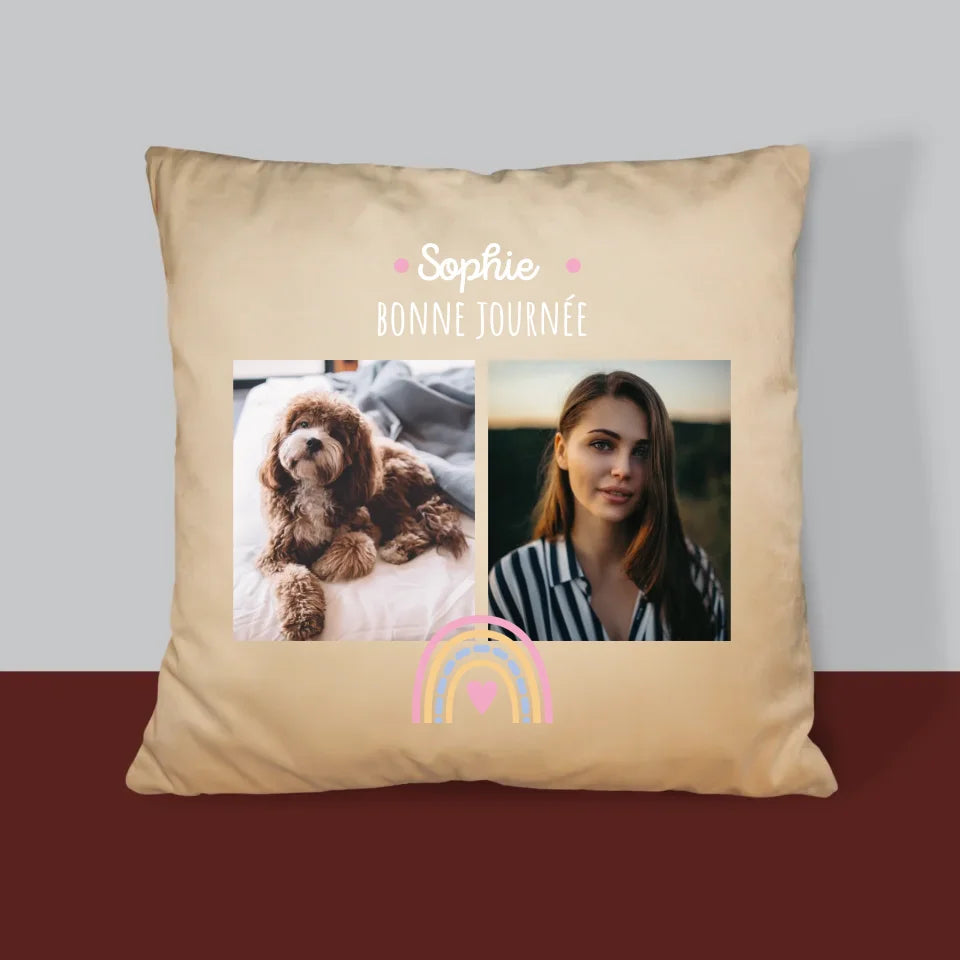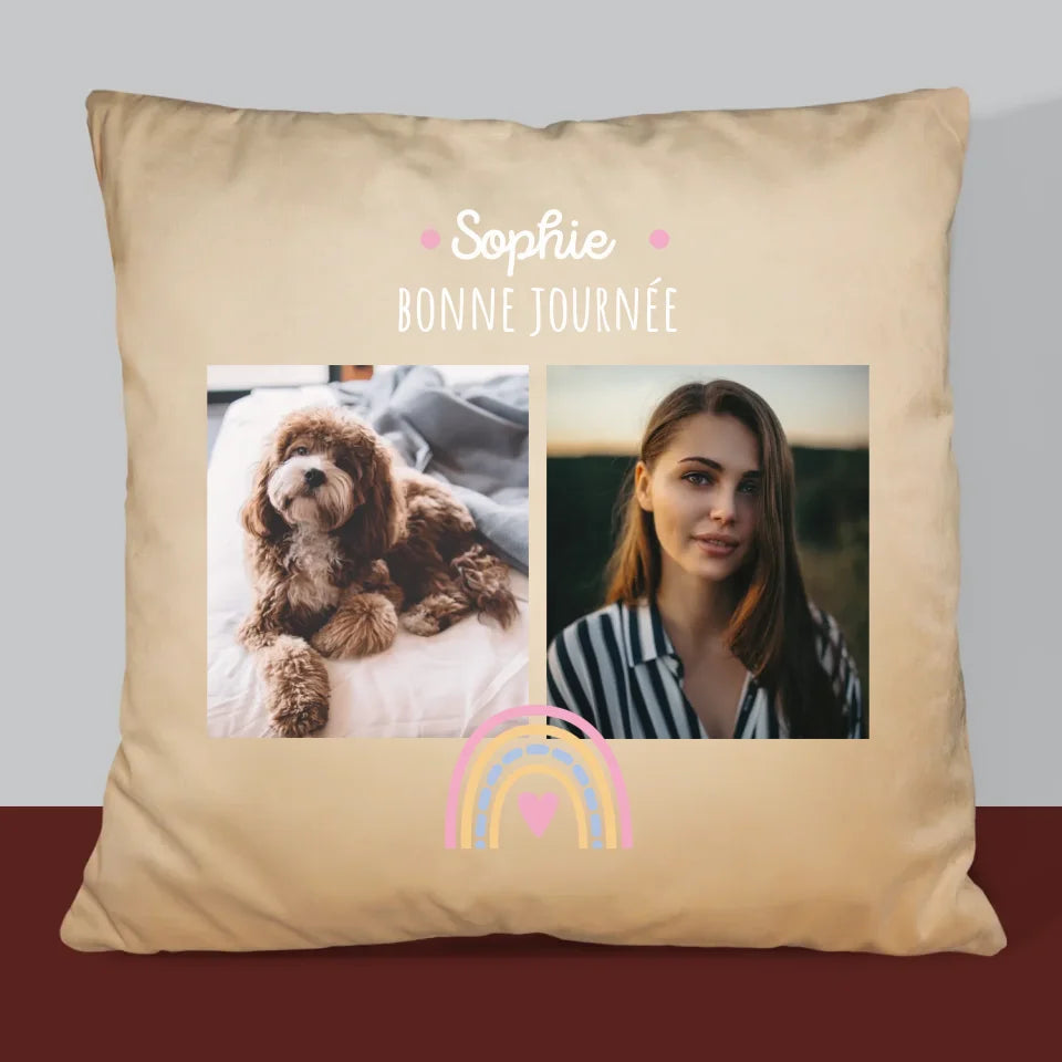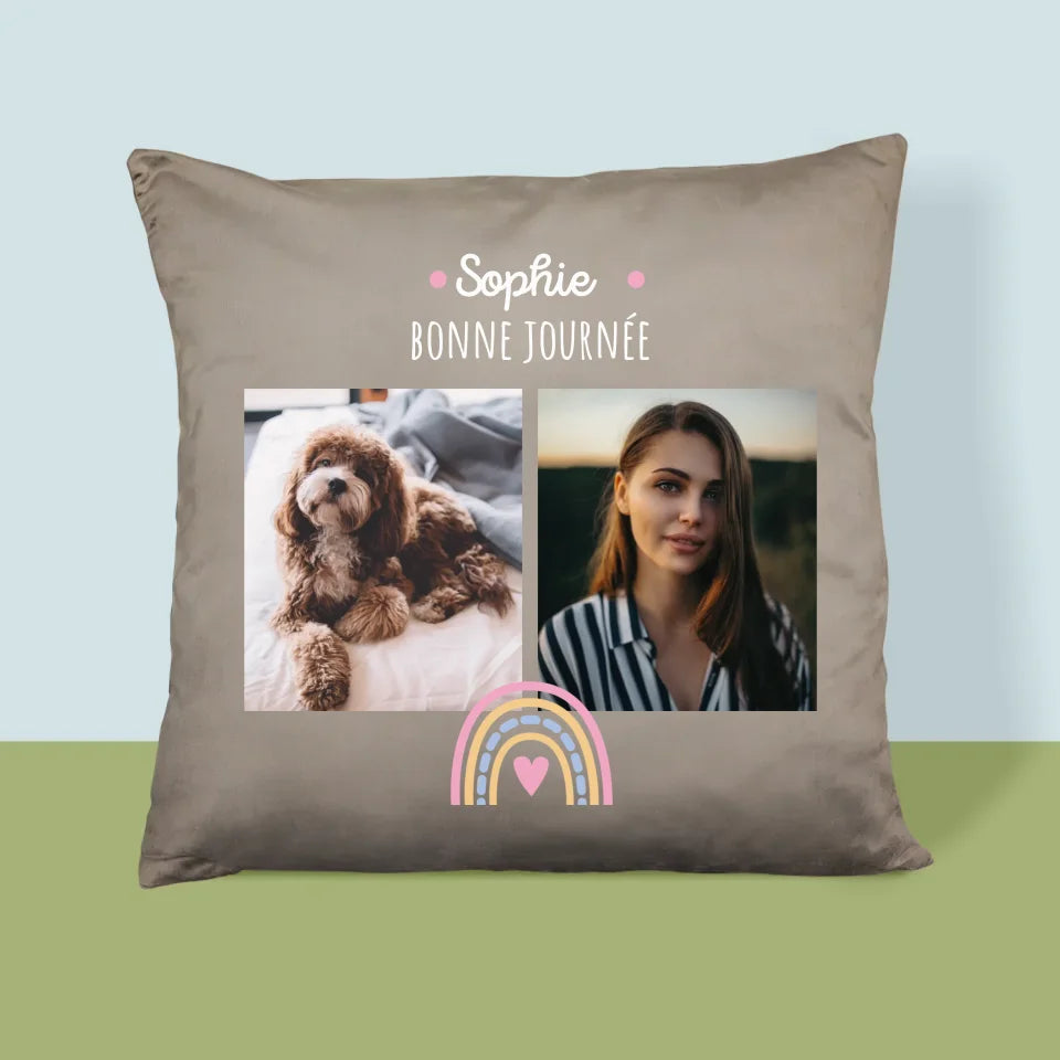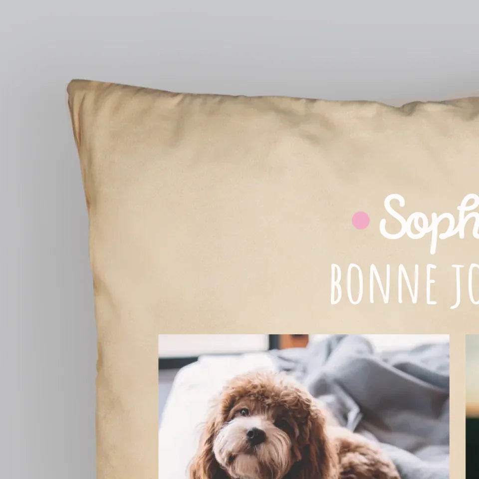 Collage Photo: Bonne Journée - Coussin