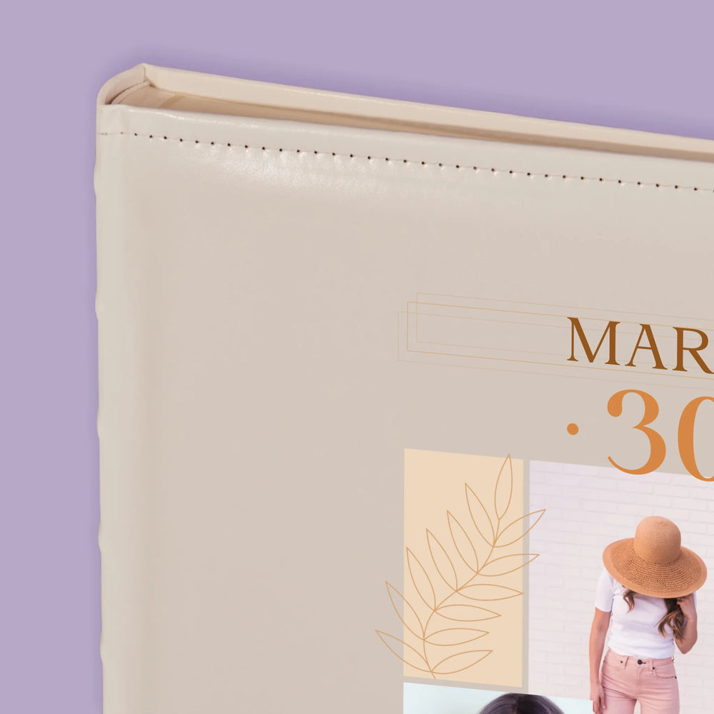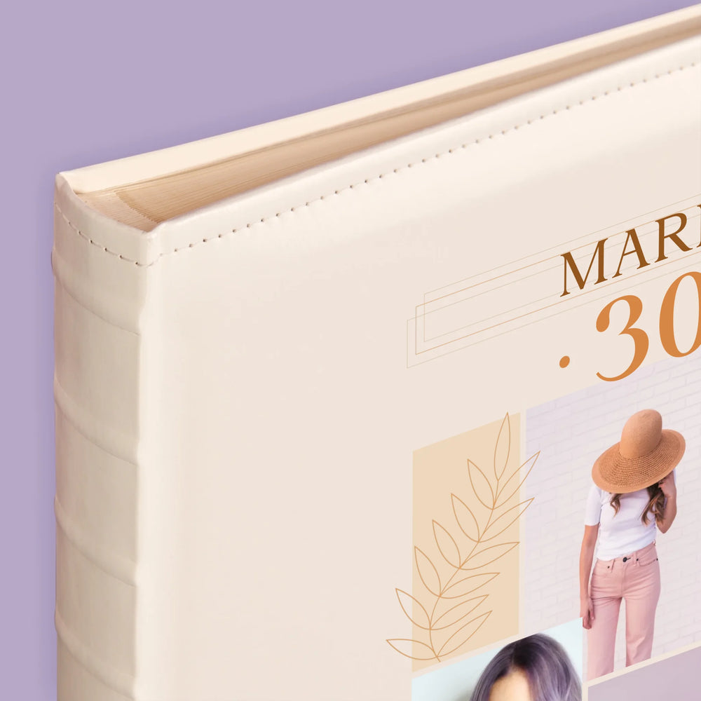 Couverture en cuir écologique, légèrement brillant, en blanc. L'album se compose de 30 cartes (60 pages).