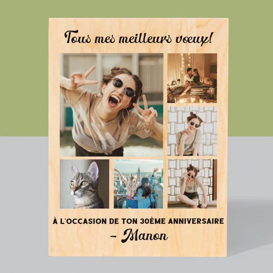 Le Collage Photo: Collage De Photos D'Anniversaire - Impression sur bois - vertical