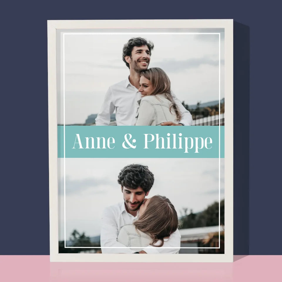 Collage Photo: Couple, Prénoms - Impression encadrée - Vertical