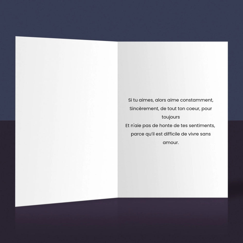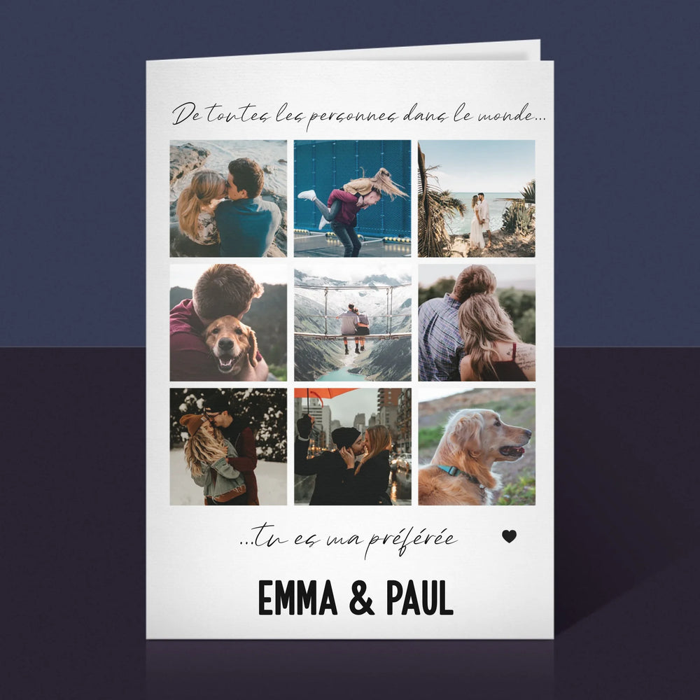 Dimensions de la carte pliée : standard : 13 x 18 cm, version XL : 21 x 29,5 cm.