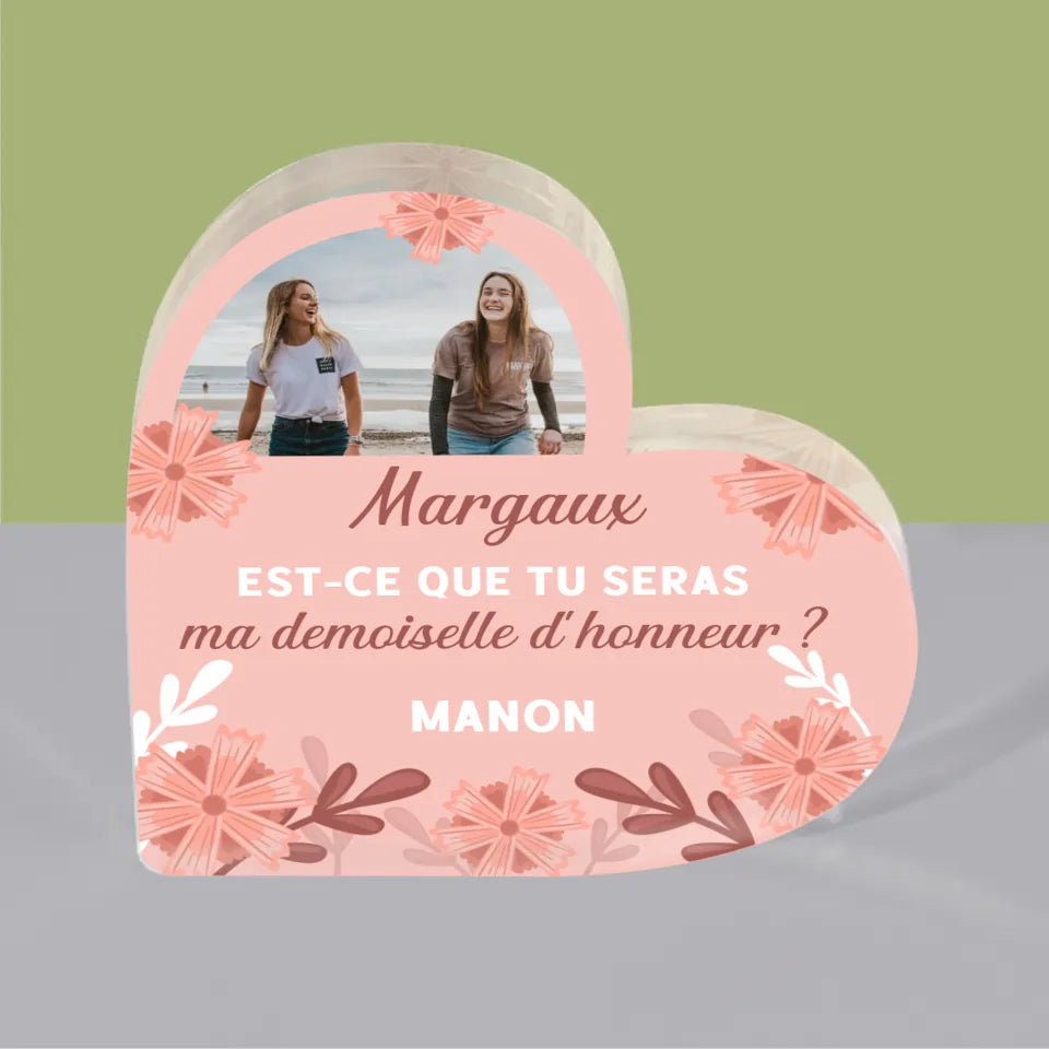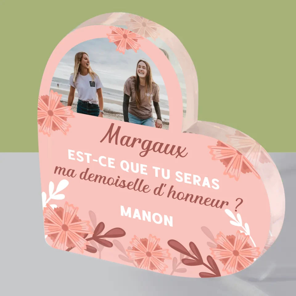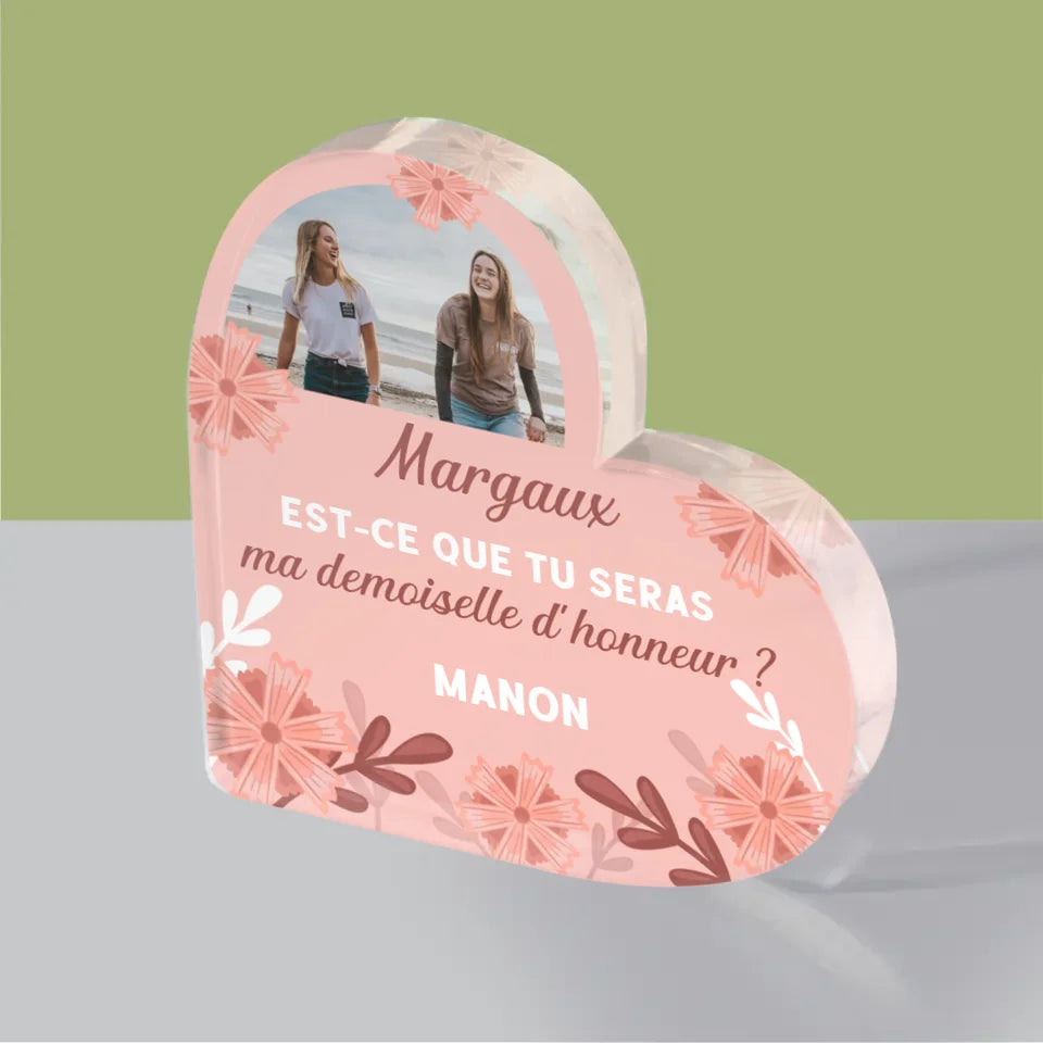Collage Photo: Demande De Devenir Une Demoiselle D'Honneur - Bloc acrylique cœur