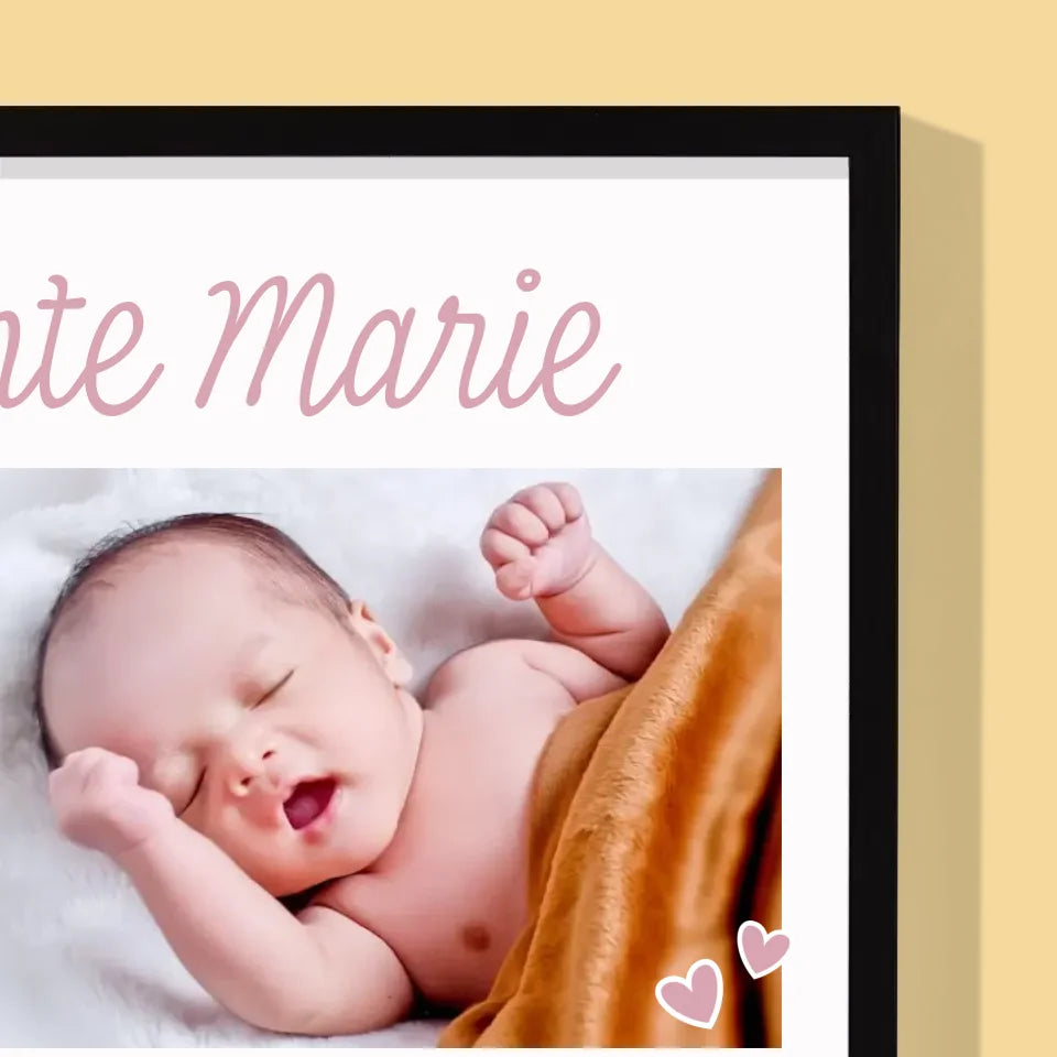 L'impression est réalisée sur le papier photo de haute qualité et encadré dans la couleur de votre choix : or, blanc ou noir.